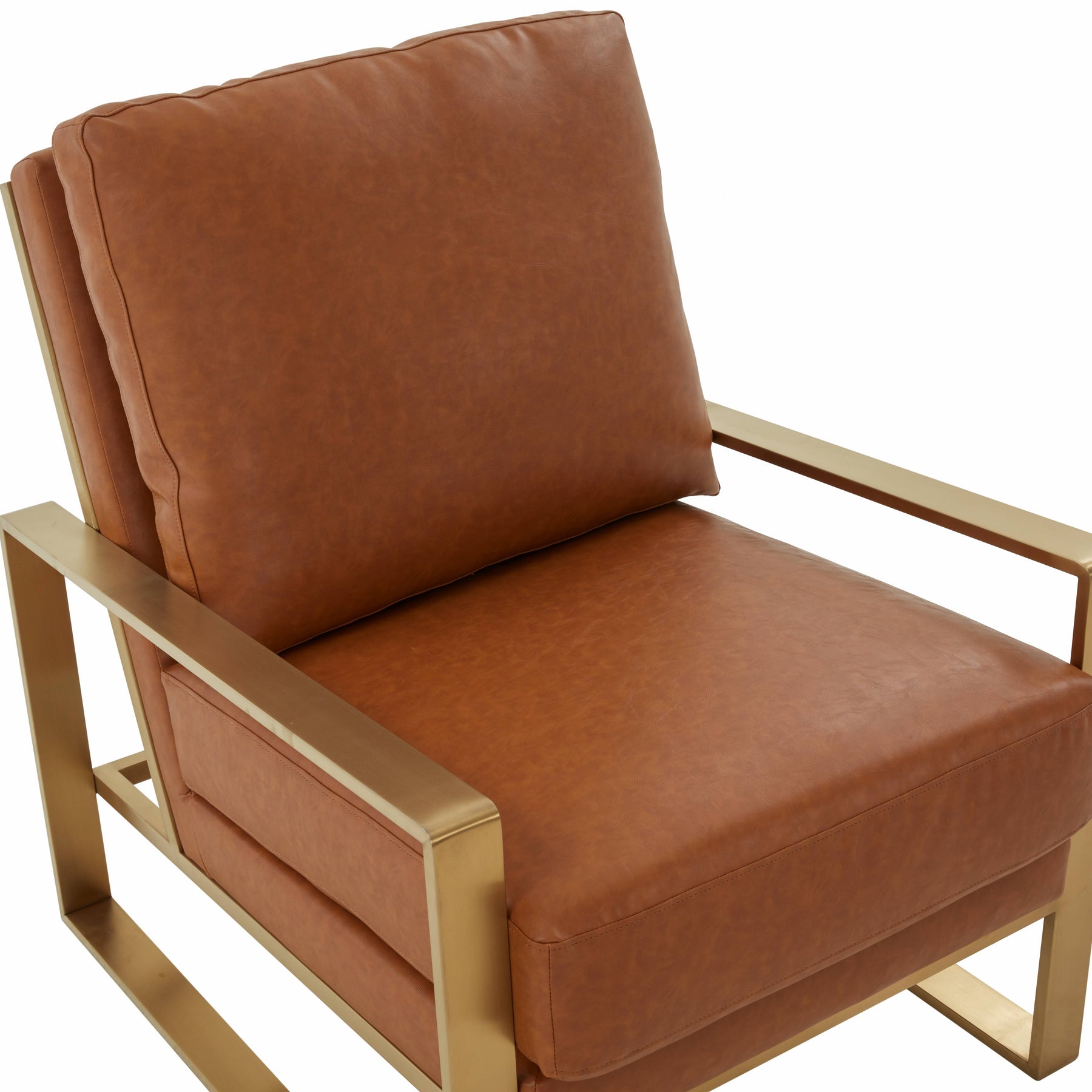 Jefferson Leather Modern Design Accent Armchair With Elegant Gold Frame