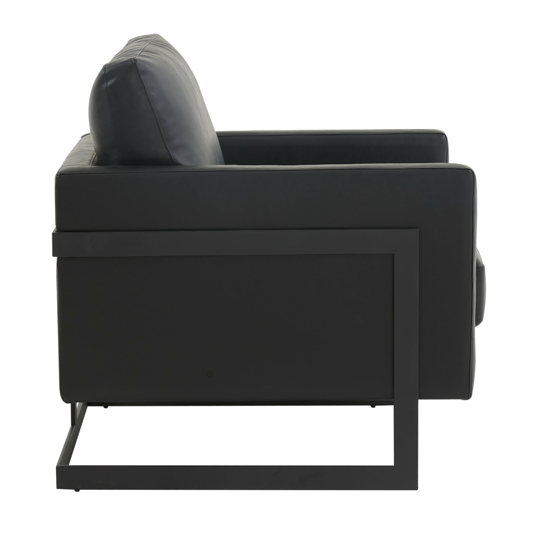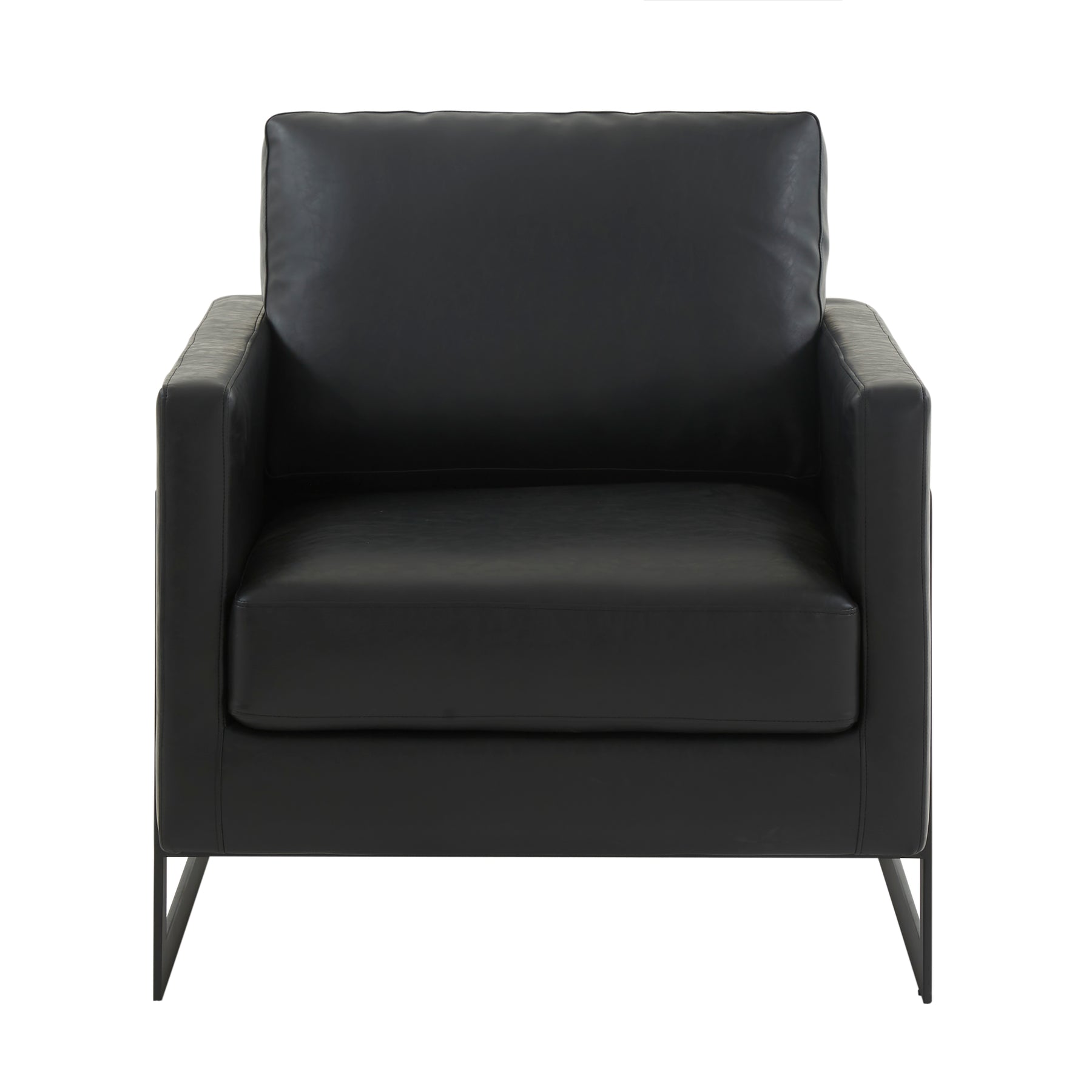 Lincoln Leather Accent Armchair With Black Steel Frame in Black