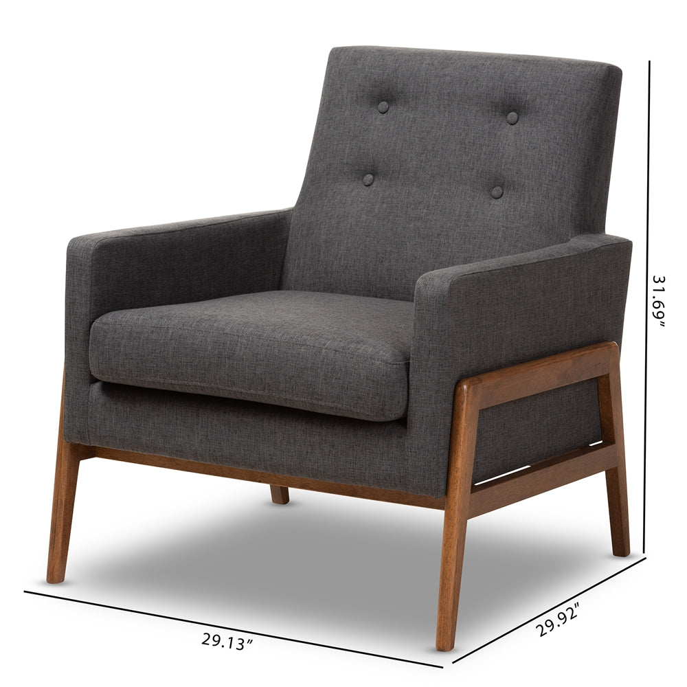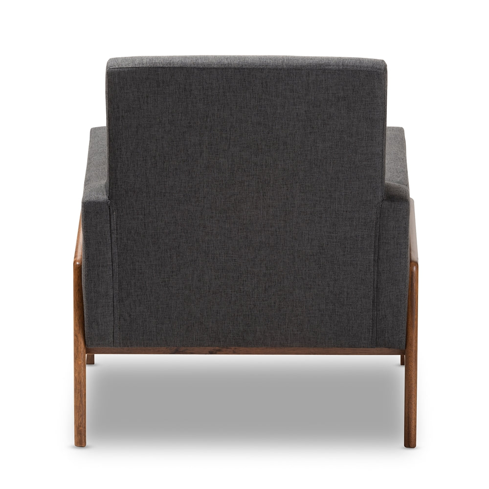 Perris Mid-Century Modern Dark Grey Fabric Upholstered Walnut Wood Lounge Chair
