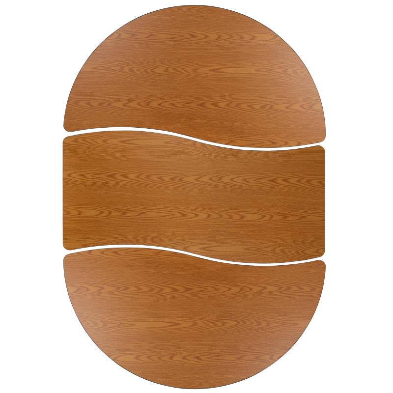 3 Piece Mobile 86" Oval Wave Collaborative Oak Thermal Laminate Activity Table Set-Standard Height Adjustable Legs