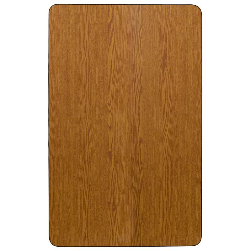 36''W x 72''L Rectangular Oak Thermal Laminate Activity Table - Standard Height Adjustable Legs