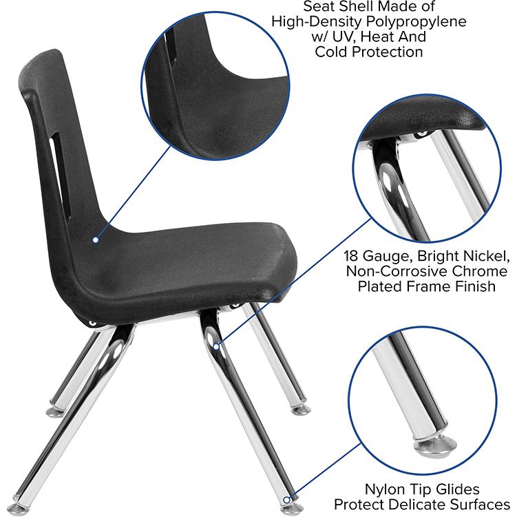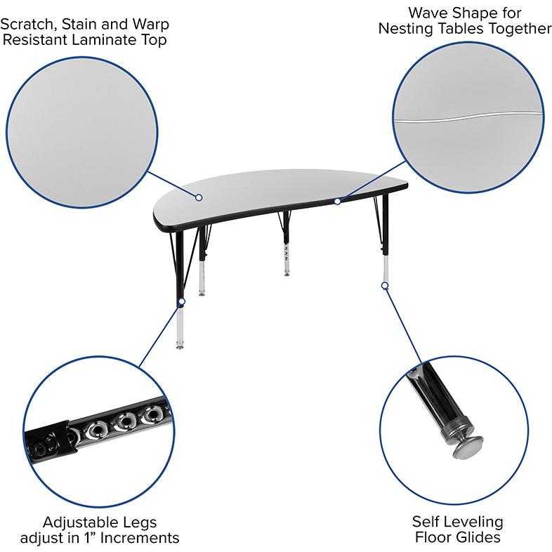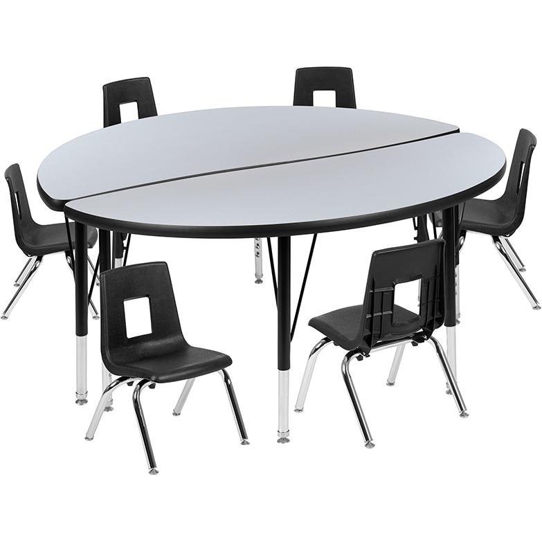 47.5" Circle Wave Collaborative Laminate Activity Table Set with 12" Student Stack Chairs, Grey/Black