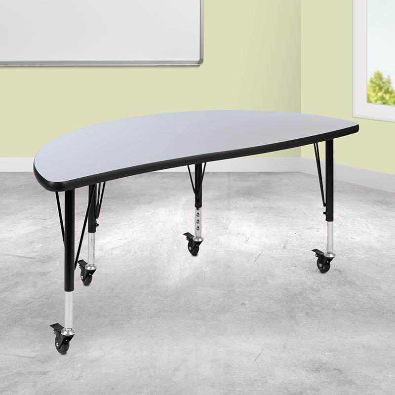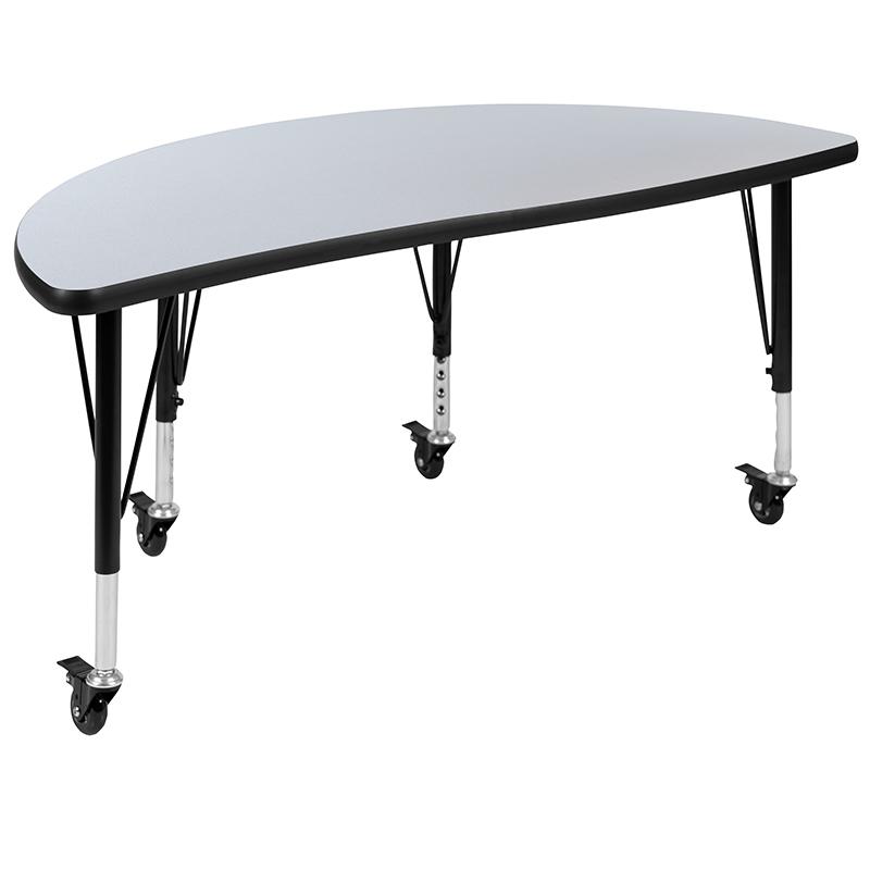 Mobile 47.5" Half Circle Wave Collaborative Grey Thermal Laminate Activity Table - Height Adjustable Short Legs