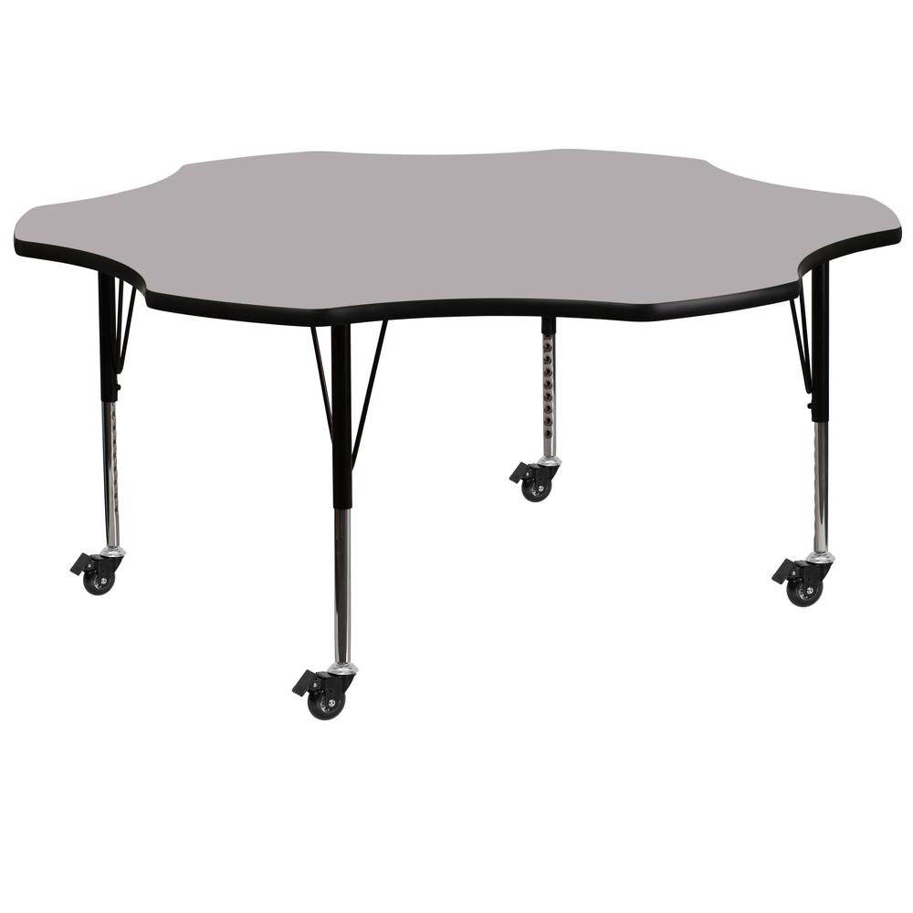 Mobile 60'' Flower Grey Thermal Laminate Activity Table - Height Adjustable Short Legs