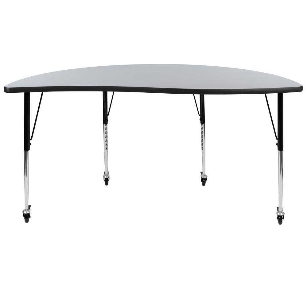 Mobile 60" Half Circle Wave Collaborative Oak Thermal Laminate Activity Table - Standard Height Adjustable Legs