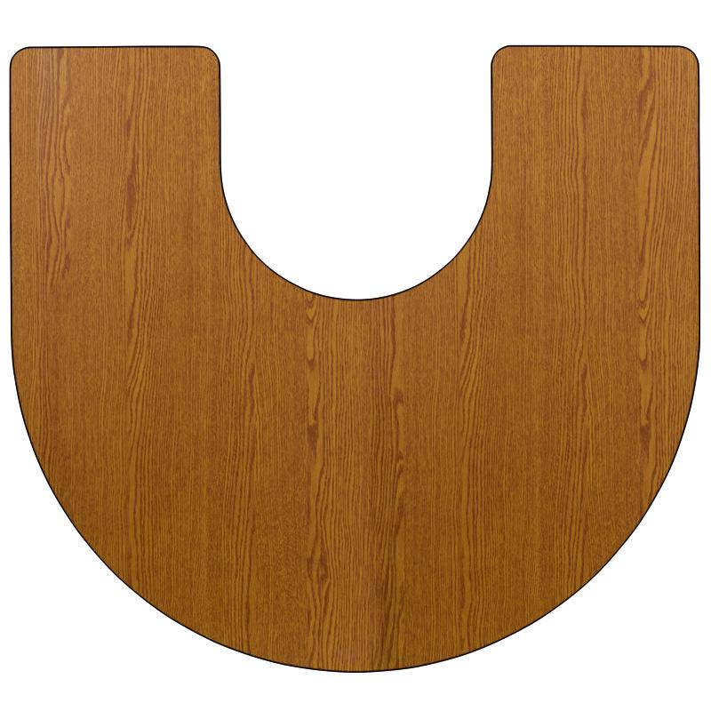 Mobile 60''W x 66''L Horseshoe Oak Thermal Laminate Activity Table - Height Adjustable Short Legs