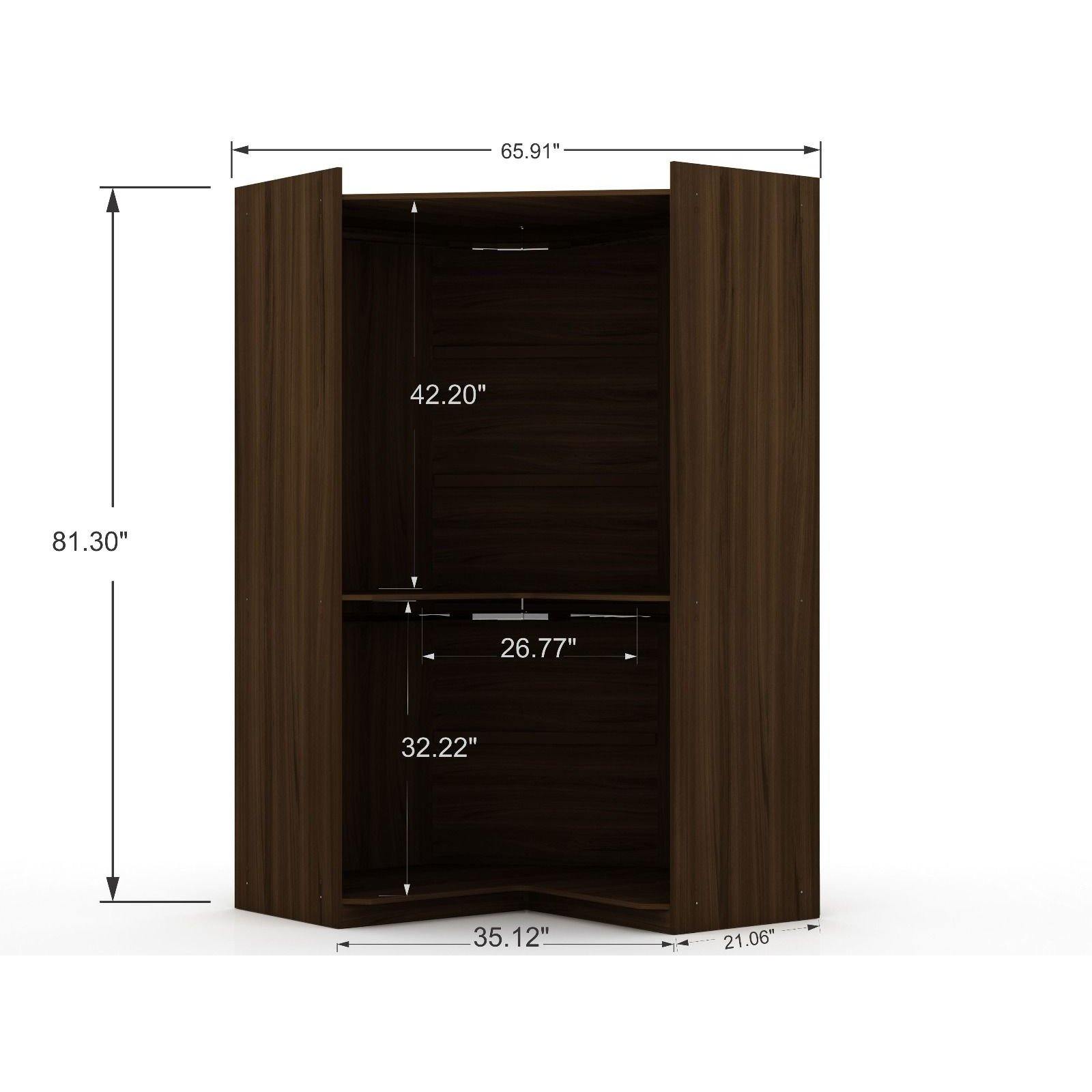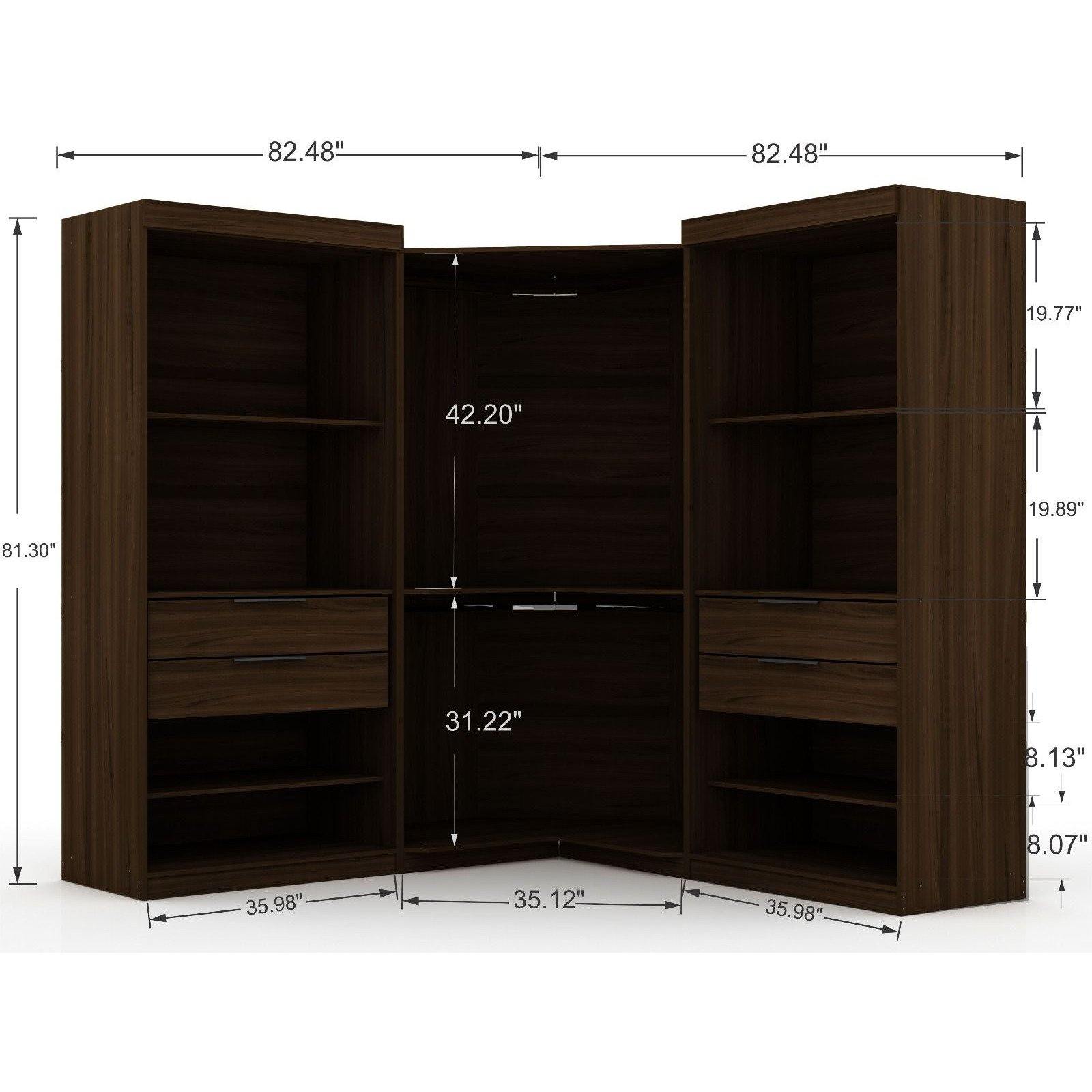 Mulberry 3.0 Sectional Modern Wardrobe Corner Closet with 4 Drawers - Set of 3 in Brown