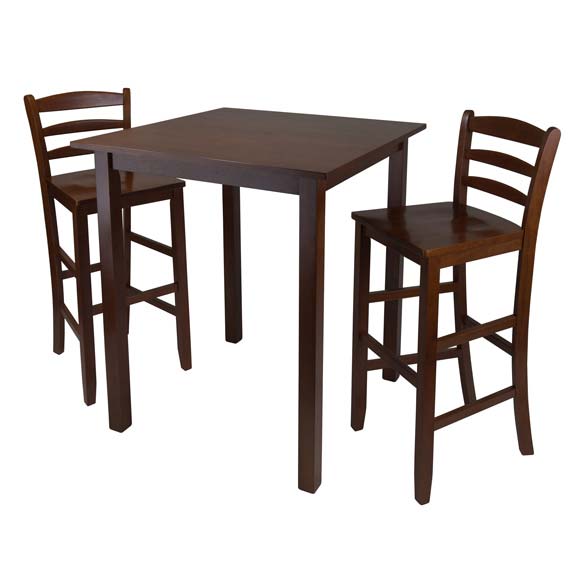 Parkland 3-Pc High Table with Ladder-back Bar Stools, Walnut