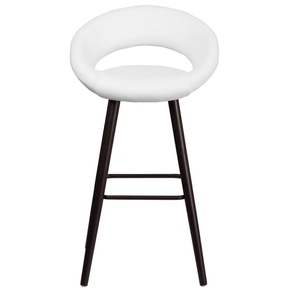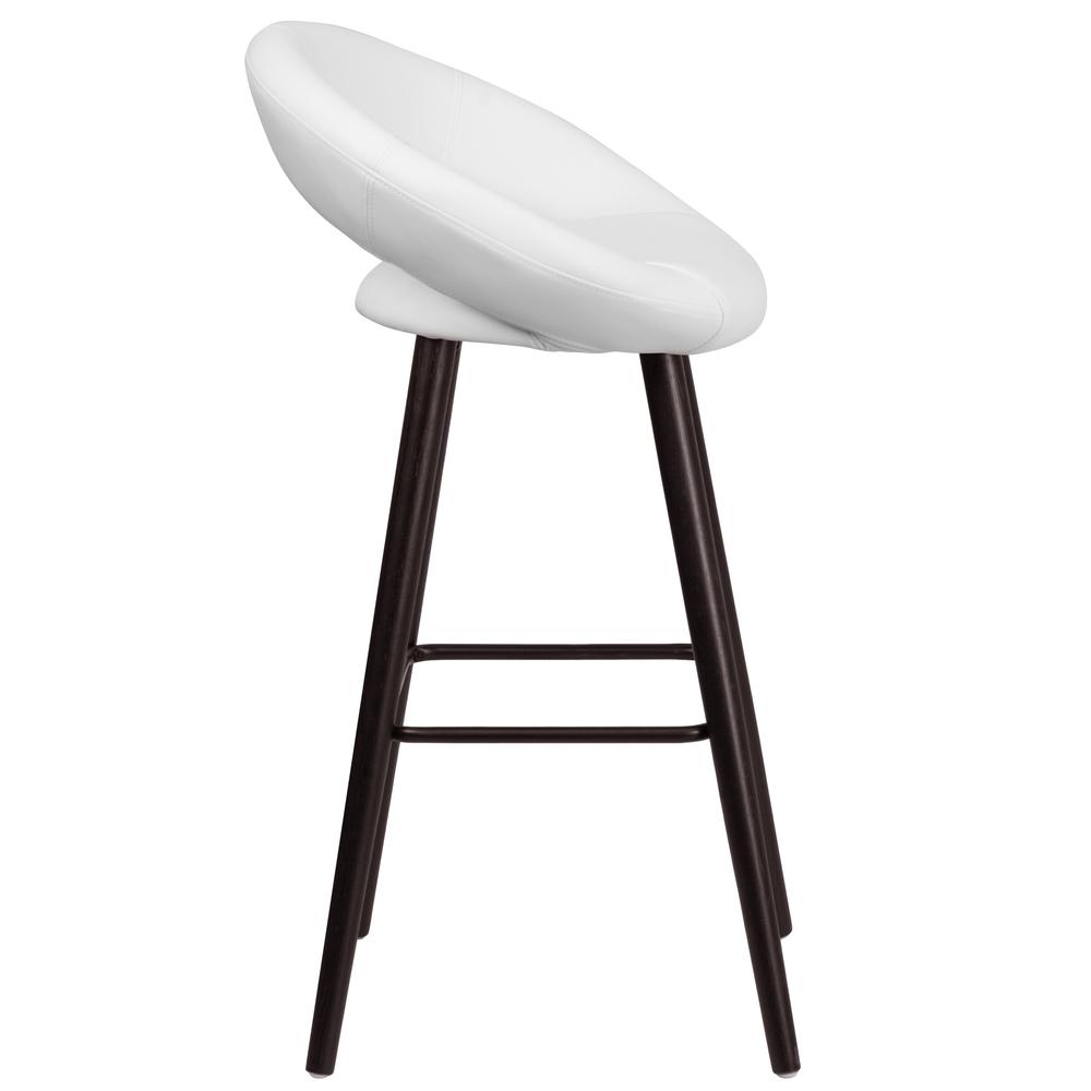 29'' High Contemporary Cappuccino Wood Rounded Back Barstool in White Vinyl