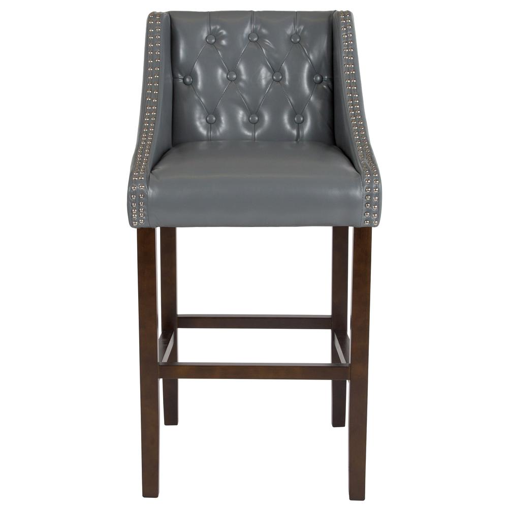 Carmel Series 30" High Transitional Tufted Walnut Barstool with Accent Nail Trim in Light Gray LeatherSoft