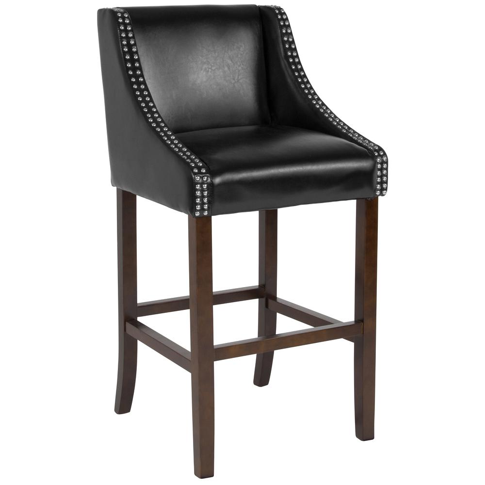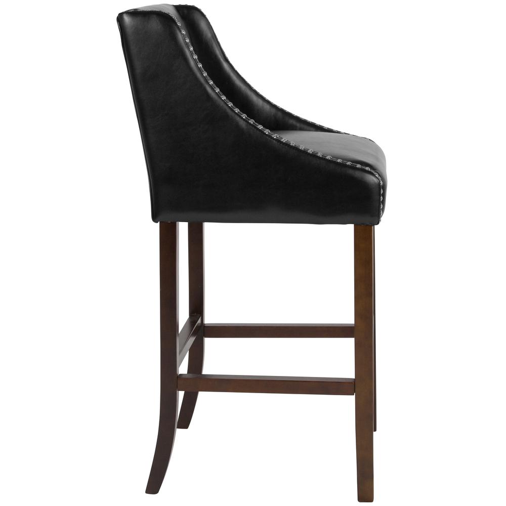 Carmel Series 30" High Transitional Walnut Barstool with Accent Nail Trim in Black LeatherSoft