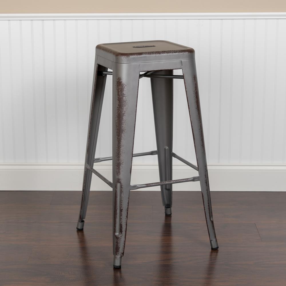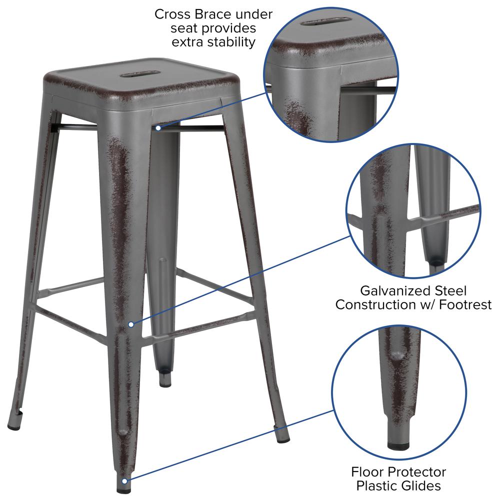 Commercial Grade 30" High Backless Distressed Silver Gray Metal Indoor-Outdoor Barstool