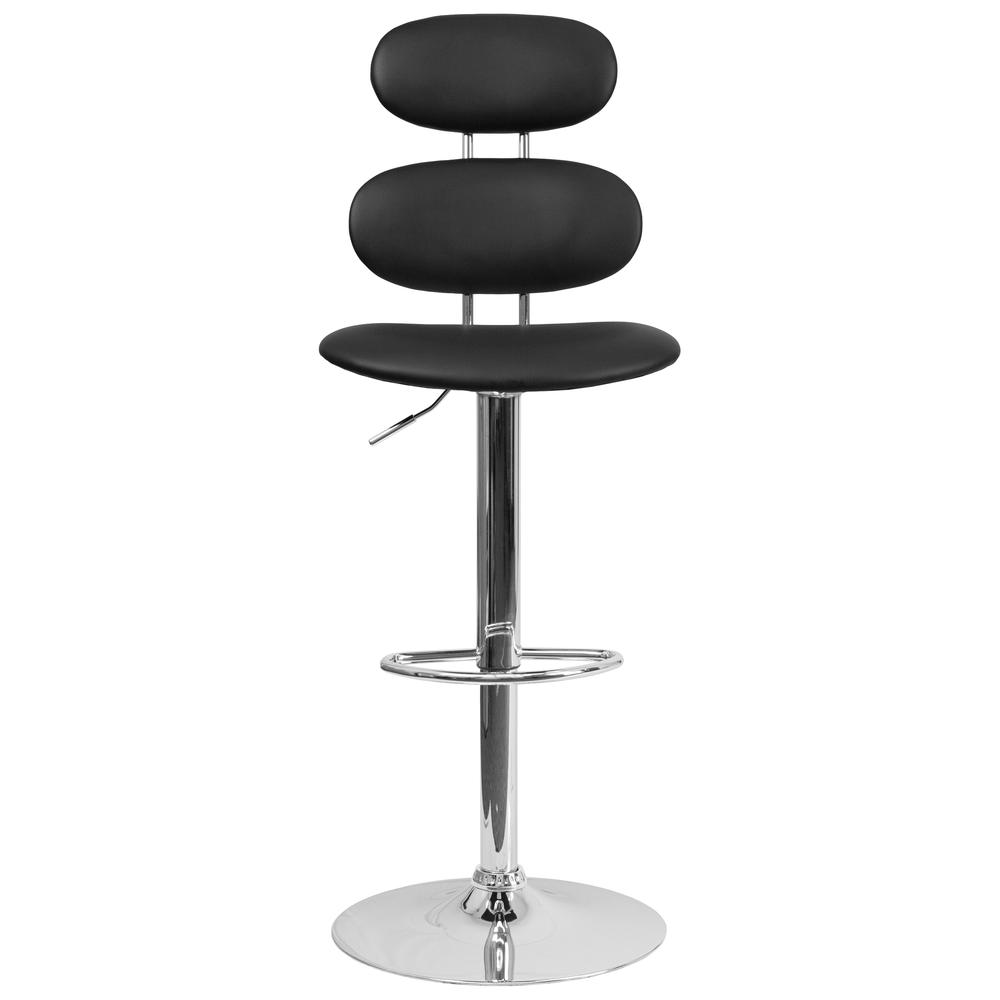 Contemporary Black Vinyl Adjustable Height Barstool with Ellipse Back and Chrome Base