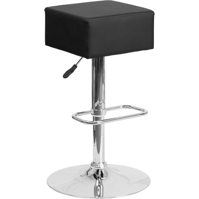 Contemporary Black Vinyl Adjustable Height Barstool with Square Seat and Chrome Base