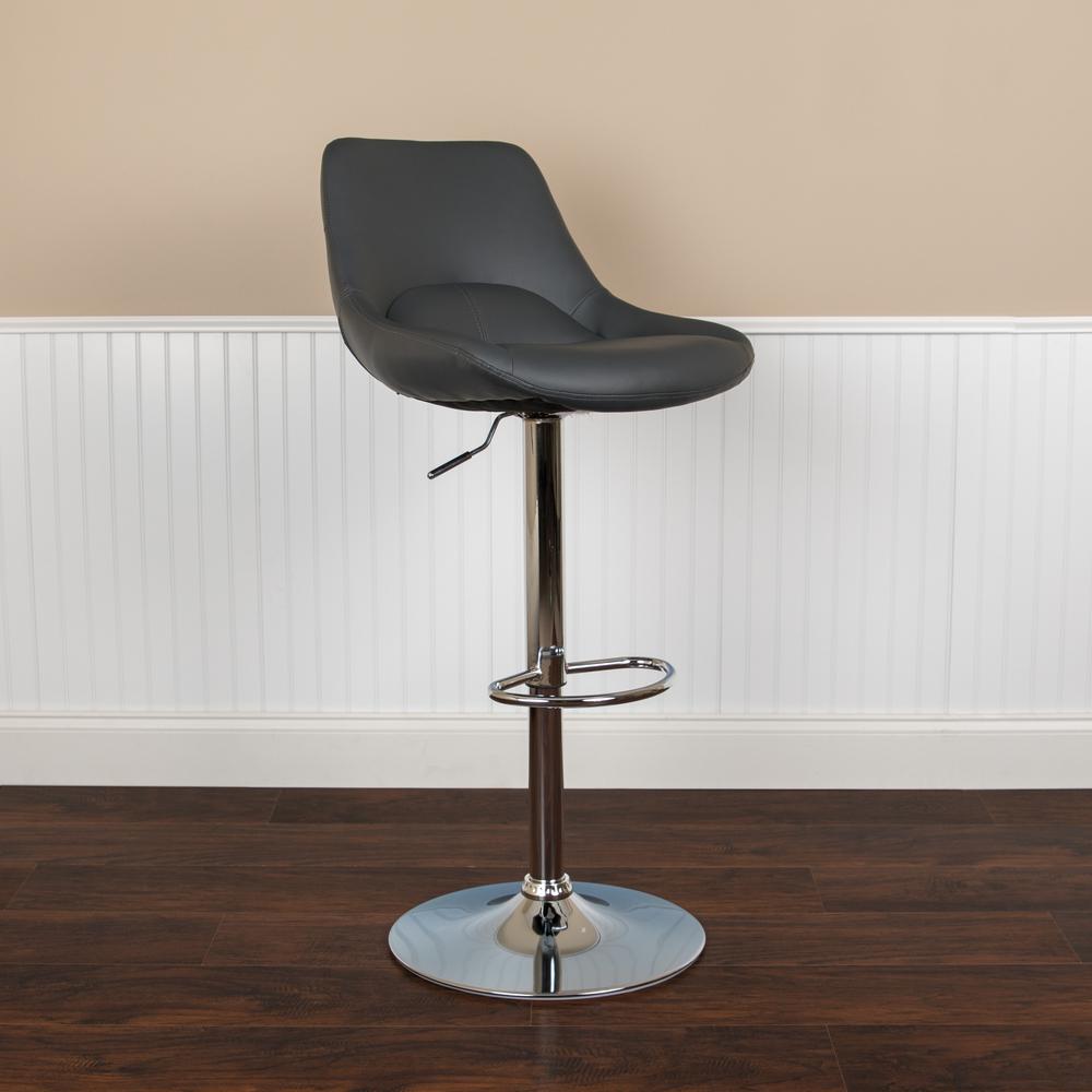 Contemporary Gray Vinyl Adjustable Height Barstool with Chrome Base
