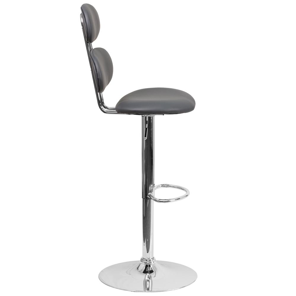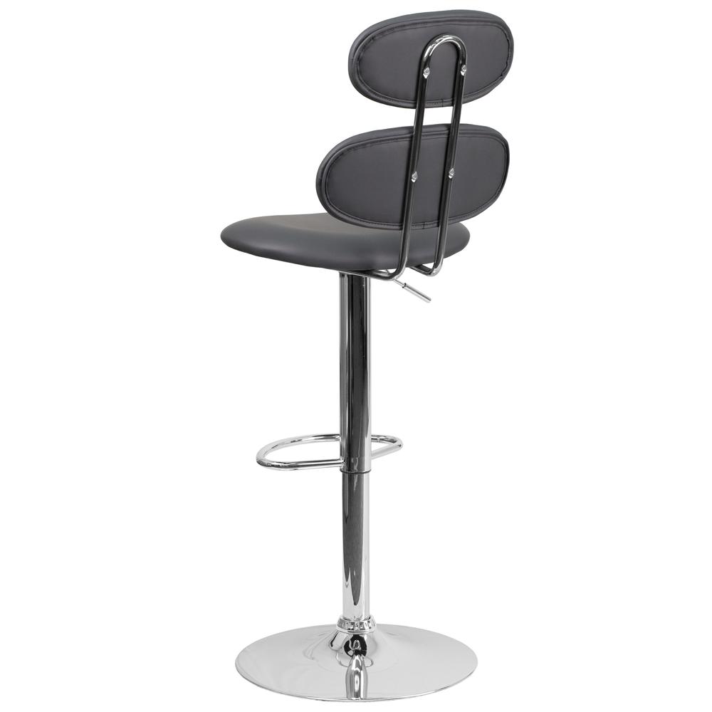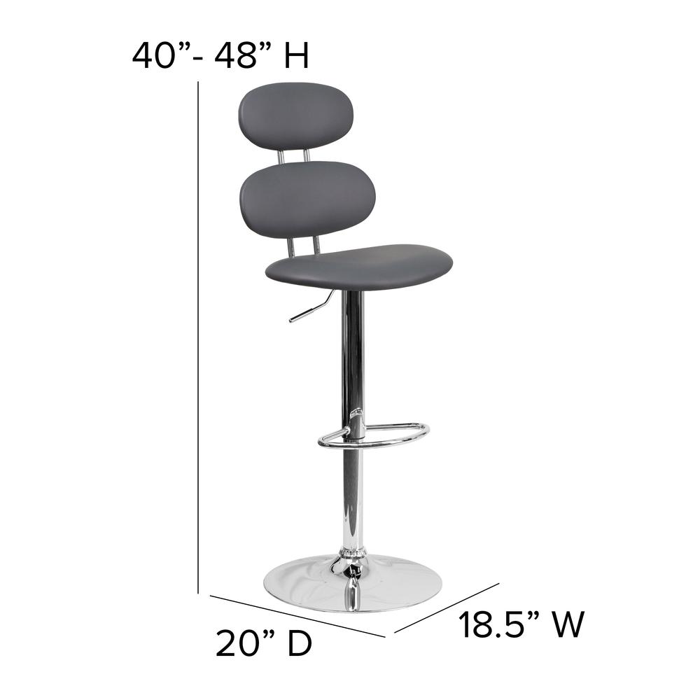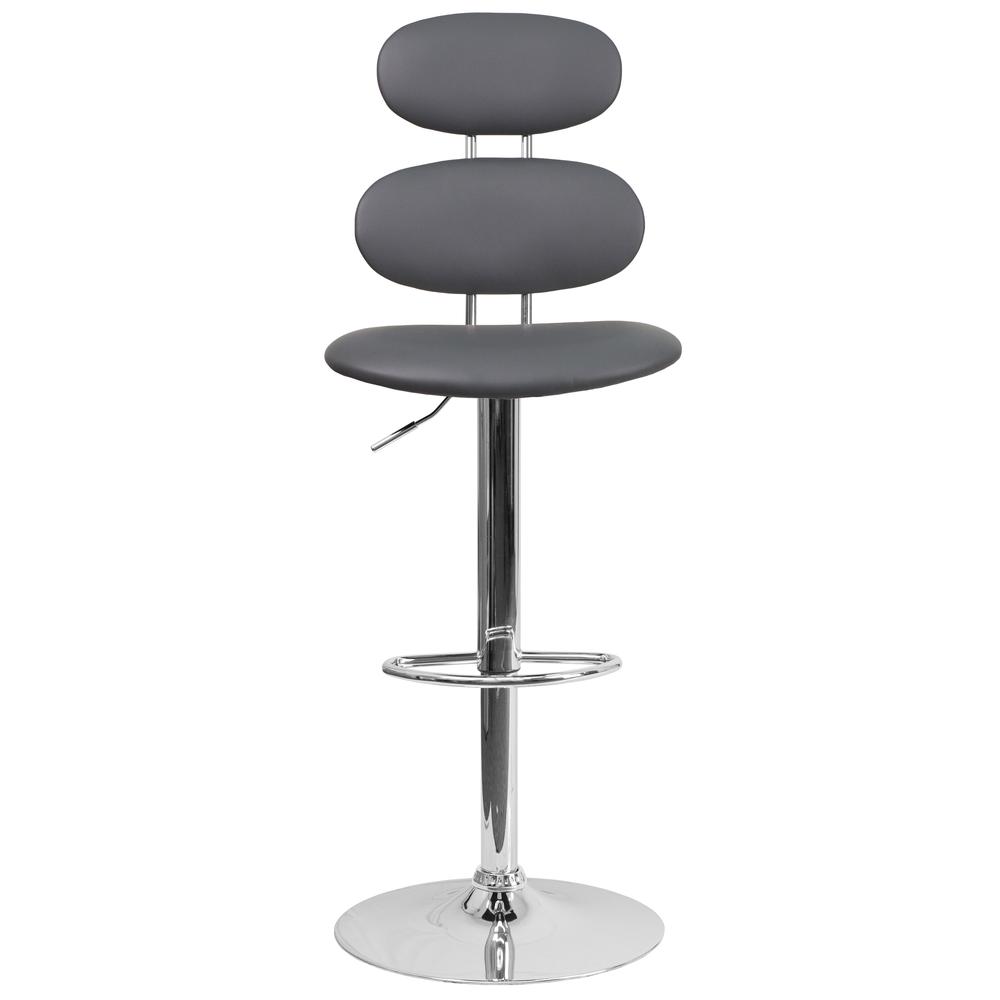 Contemporary Gray Vinyl Adjustable Height Barstool with Ellipse Back and Chrome Base