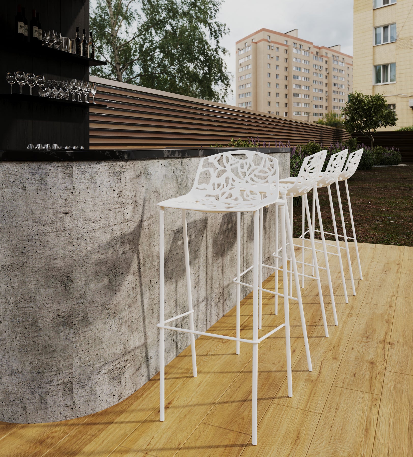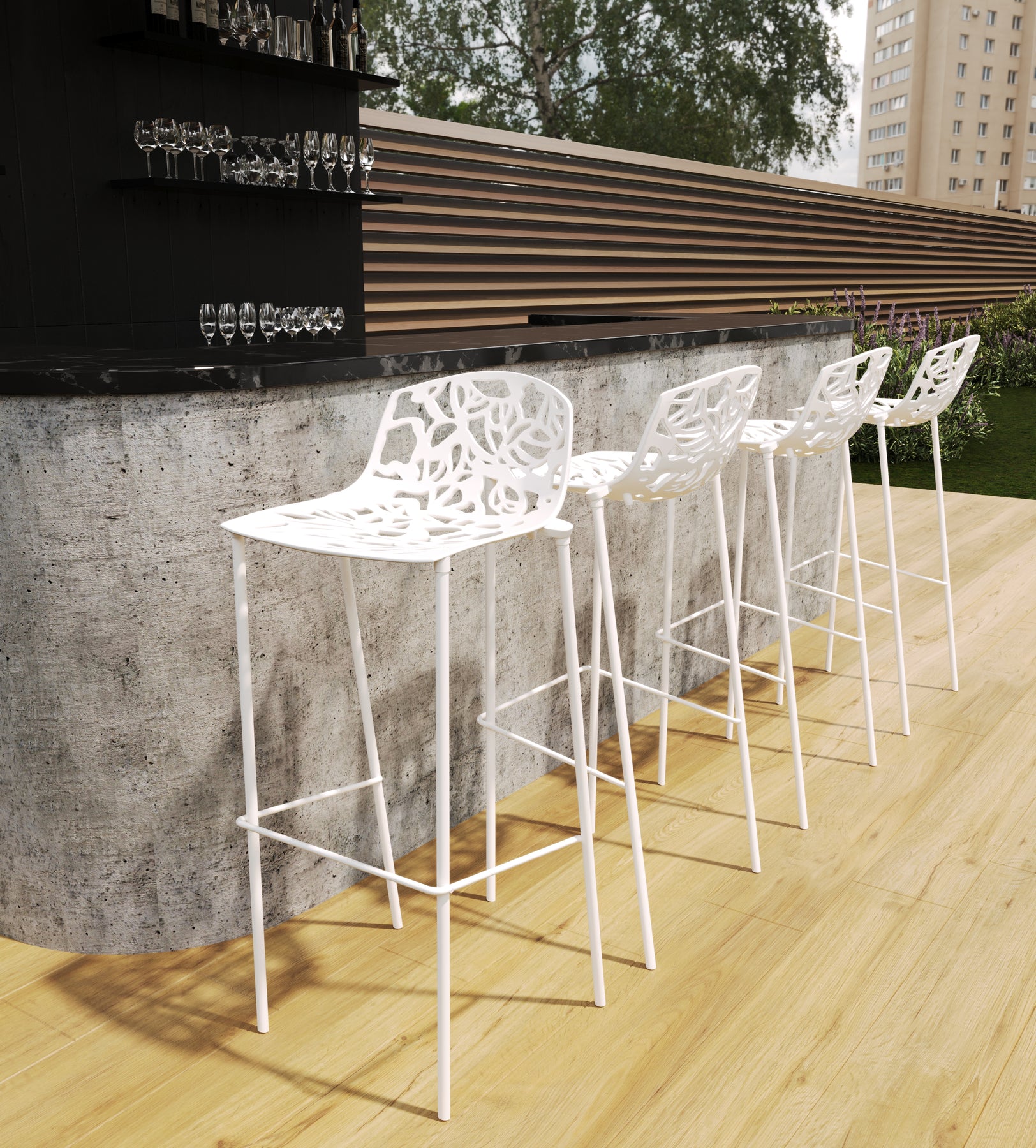 Looking for a comfortable and stylish bar stool that is perfect for indoor or outdoor use? The Devon Bar Stool is a stylish and comfortable way to add seating to your home. It is perfect for use in a kitchen, dining room, bar, or other commercial or residential setting. The bar stool features a unique cut-out design that adds a touch of sophistication and style. The cut-out design also allows for better airflow, making the bar stool more comfortable to sit in for long periods of time. The bar stool's powder-coated aluminum frame prevents rust and makes it suitable for indoor or outdoor use. It is available in a variety of colors to match your decor. If you are looking for a comfortable and stylish bar stool for your home, then the Devon Modern Aluminum Bar Stool is the perfect choice for you.