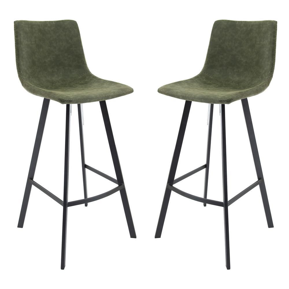 Elland Modern Upholstered Leather Bar Stool With Iron Legs Footrest Set of 2
