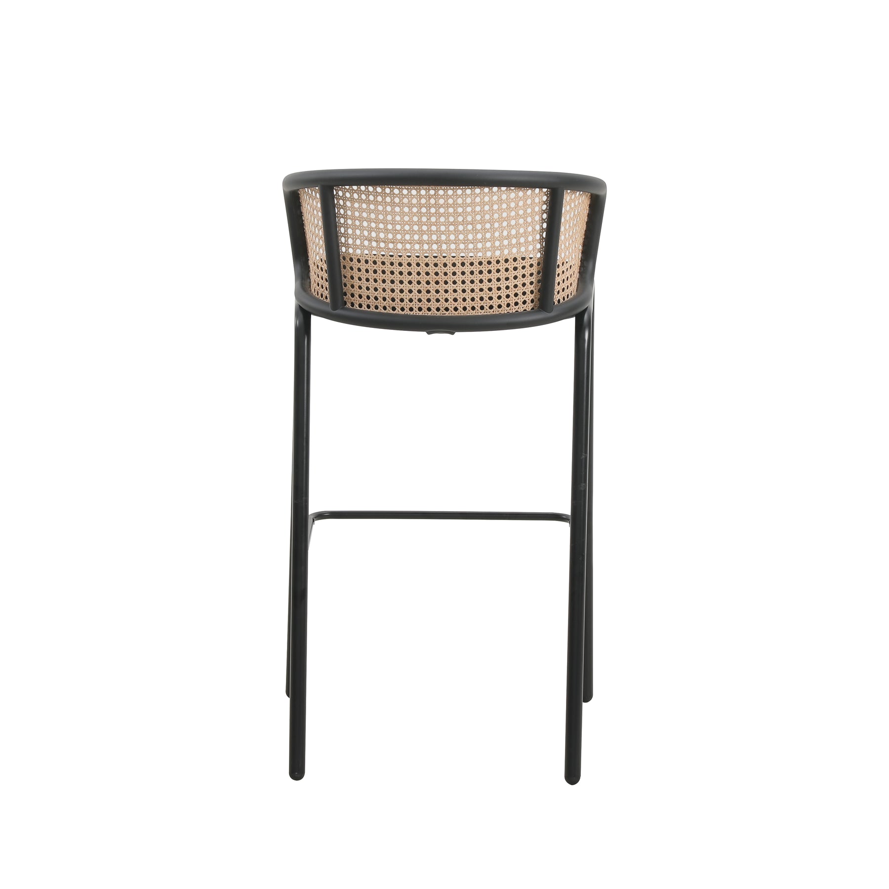 - The Bar Stool boasts a sleek low-back wicker design that effortlessly captures the essence of mid-century modern aesthetics and has armrests, which offer additional support and comfort.