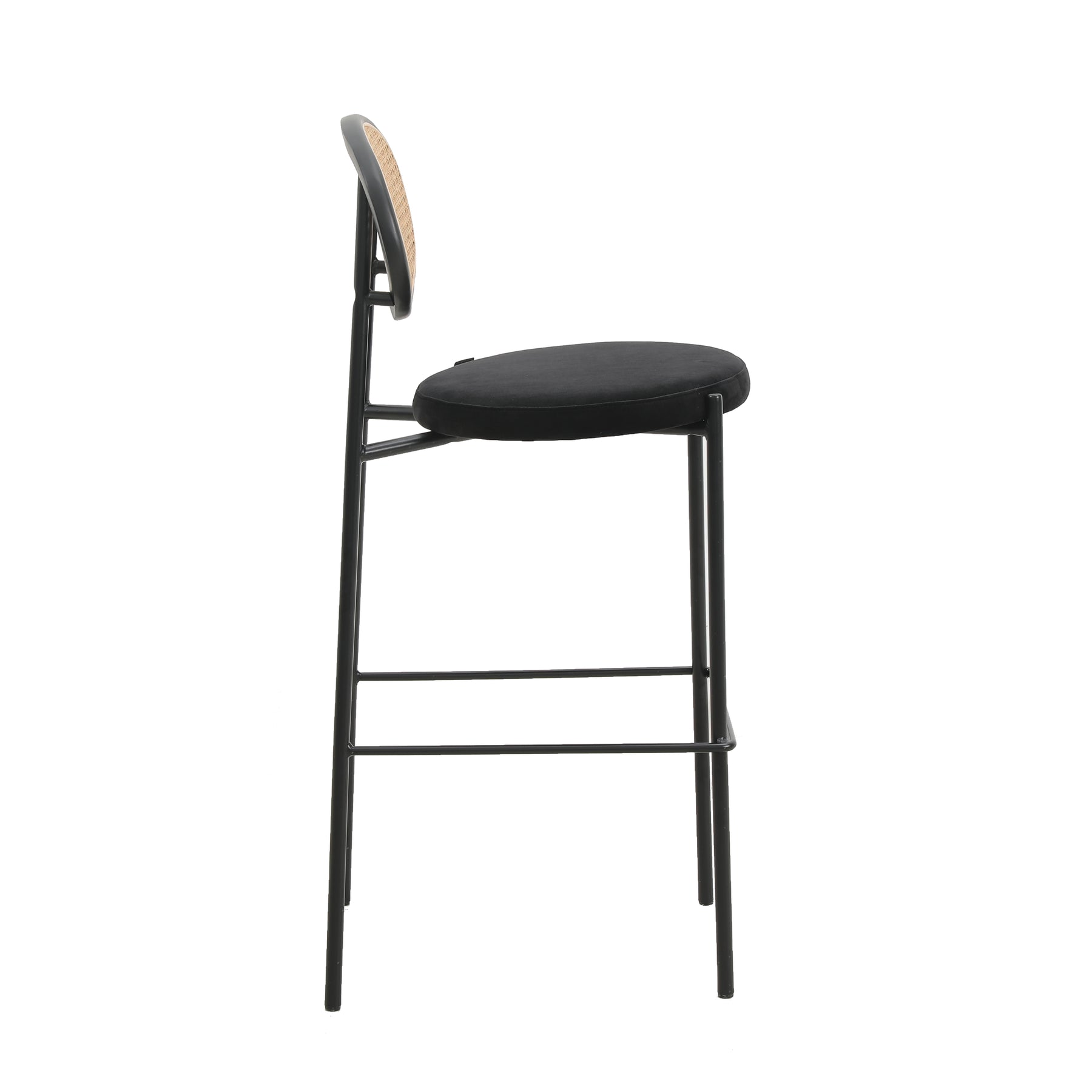 Euston Modern Wicker Bar Stool With Black Steel Frame, Set of 2 in Black
