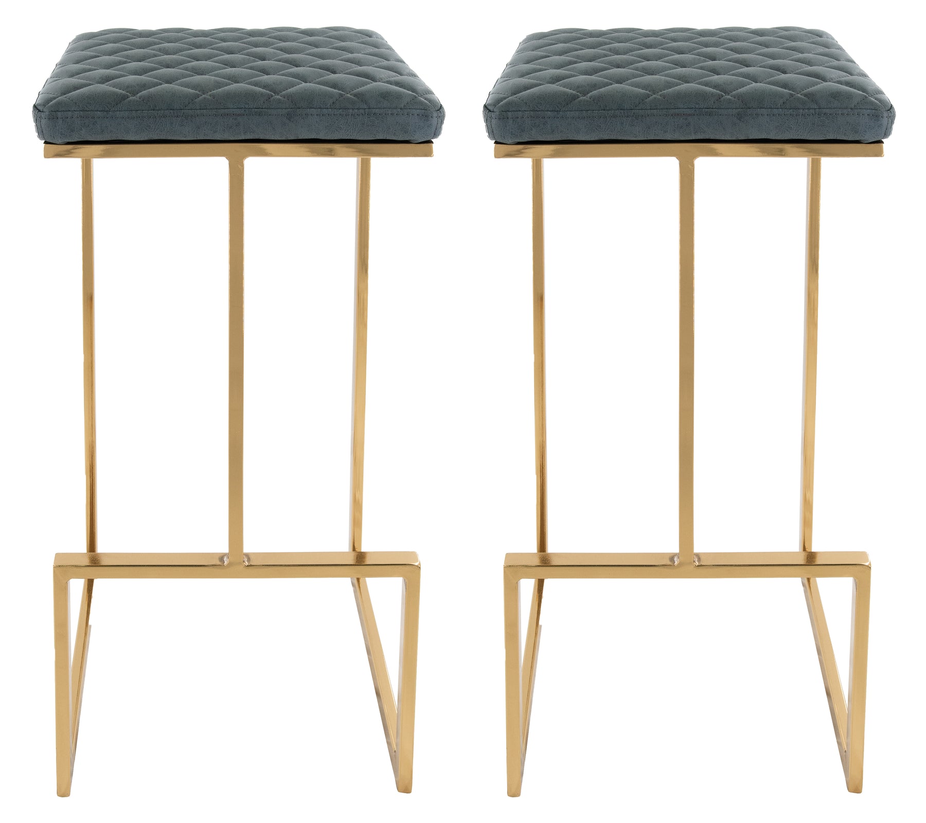 Quincy Leather Bar Stools With Gold Metal Frame Set of 2