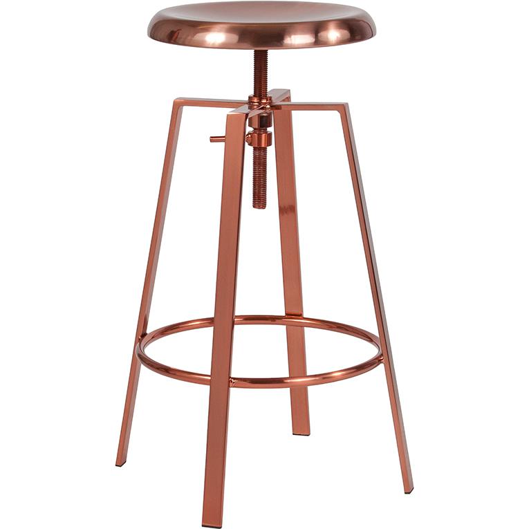 Toledo Industrial Style Barstool with Swivel Lift Adjustable Height Seat in Rose Gold Finish