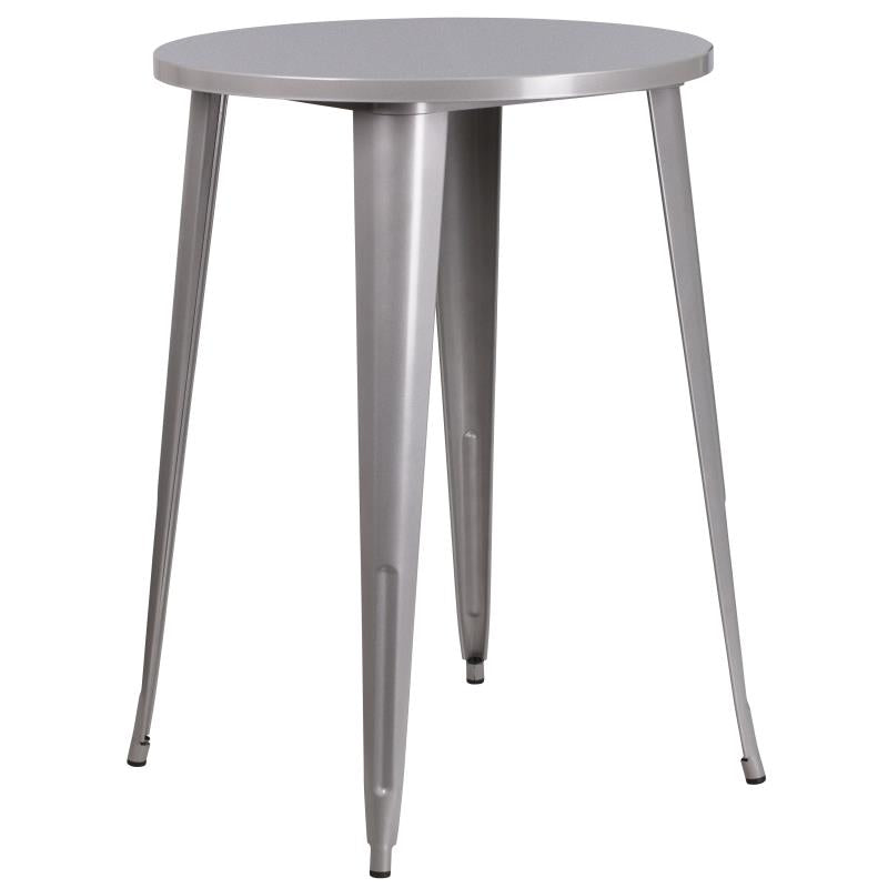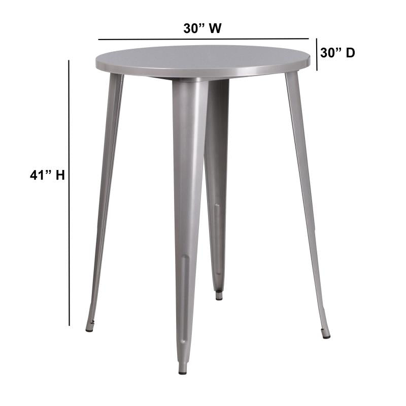 30'' Round Silver Metal Indoor-Outdoor Bar Height Table