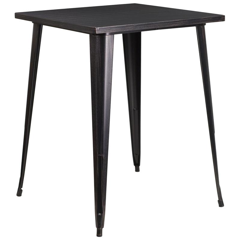 Commercial Grade 31.5" Square Black-Antique Gold Metal Indoor-Outdoor Bar Height Table