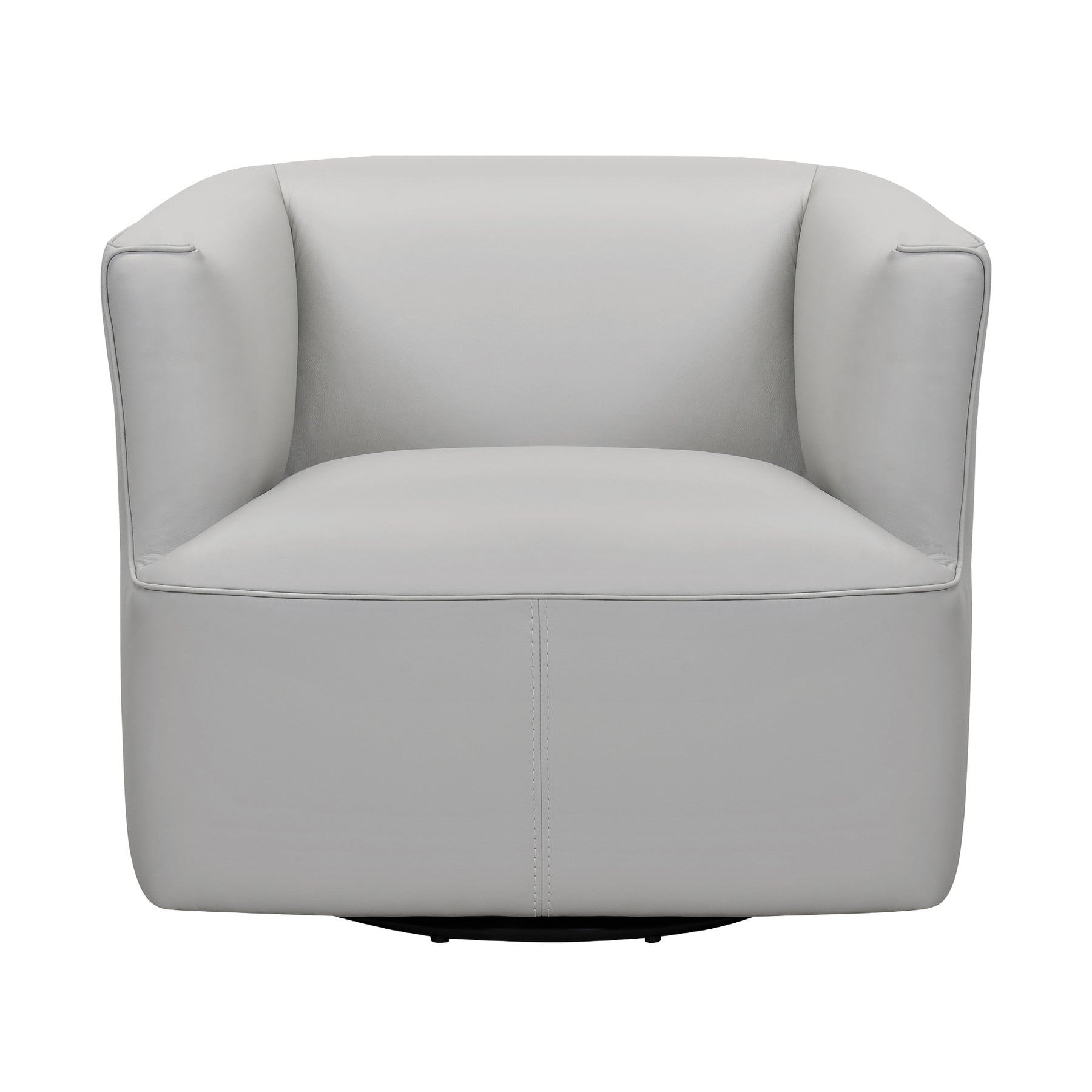 Whitney Swivel Dove Gray Genuine Leather Barrel Chair