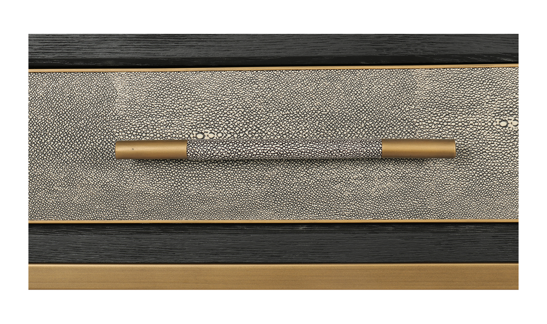 The Mako Console Table is a classy affair of solid oak. Brass legs and handles instill this piece of furniture with a feeling of elegance and warmth.The cabinet is finished off with a matt lacquer for an understated look because our Mako furniture speaks for itself.A solid oak frame construction will last for years to come.Brass furniture is a timeless investment.Helps achieve a contemporary modern look in your home.Made in ChinaContemporary Modern. Color: Black Oak Wood Color We offer 1 Year warranty. Dimension:59W 16D 33H. Product Weight:82.00 lbs. Material: Shagreen PUBrass LegsPlywoodSolid Black Oak FrameWe understand how important your home is and how decorating your kitchen, dining room or bedrooms with classy, contemporary furnishings can help make it a place that reflects who you are. We believe in the power modern furniture has in creating not just a home but YOUR home. We believe in feeling good about our home's environment, and we think you do too.