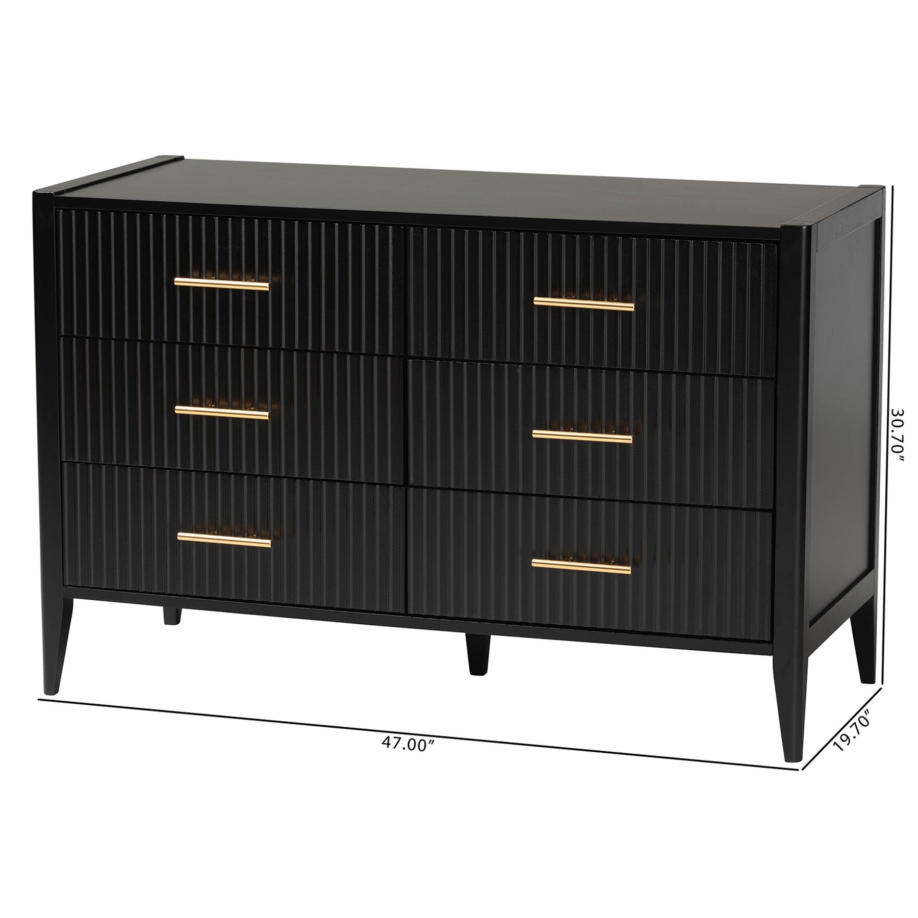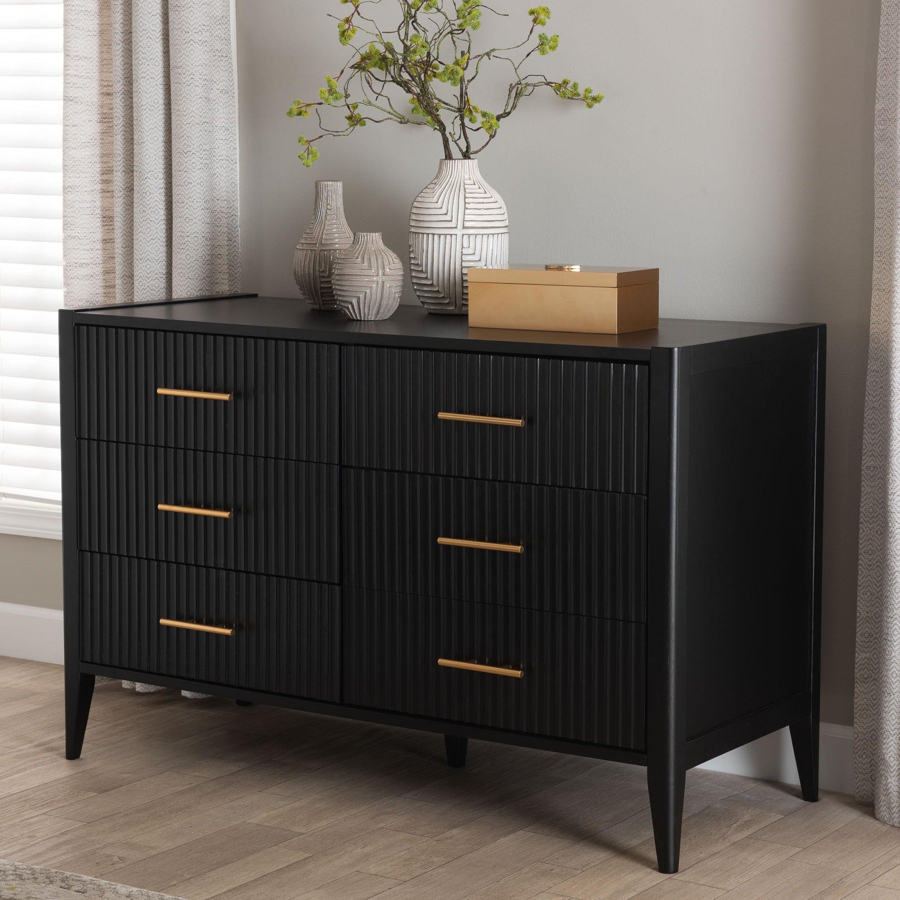 Primrose Mid-century Black Fluted Wood 6-drawer Dresser