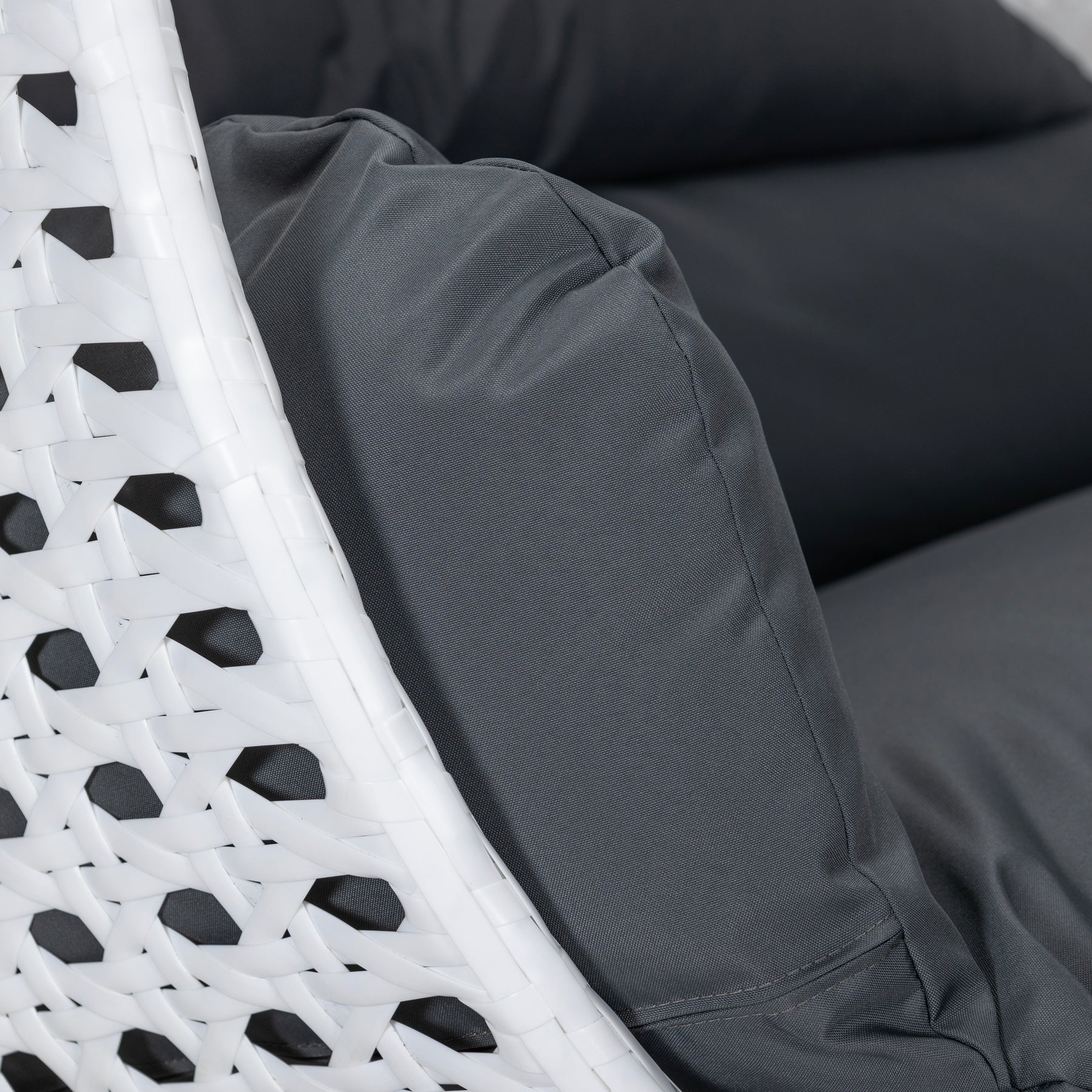 - Experience unparalleled comfort with our egg-shaped two-person seat swing chair set, perfect for indoor and outdoor furniture relaxation. Its unique design merges elegance with coziness, reinforced by double chain hooks and a sturdy metal stand for unwavering stability. Enhanced by a wicker frame and paired with a soft seat cushion, it provides the perfect setting for intimate conversations.