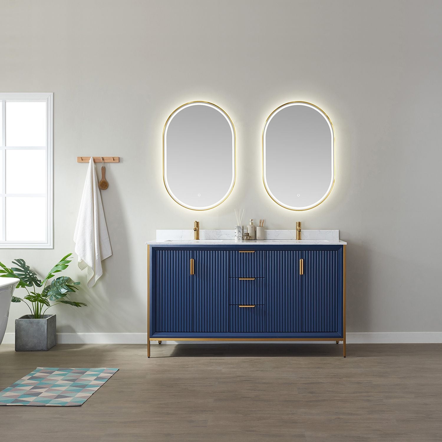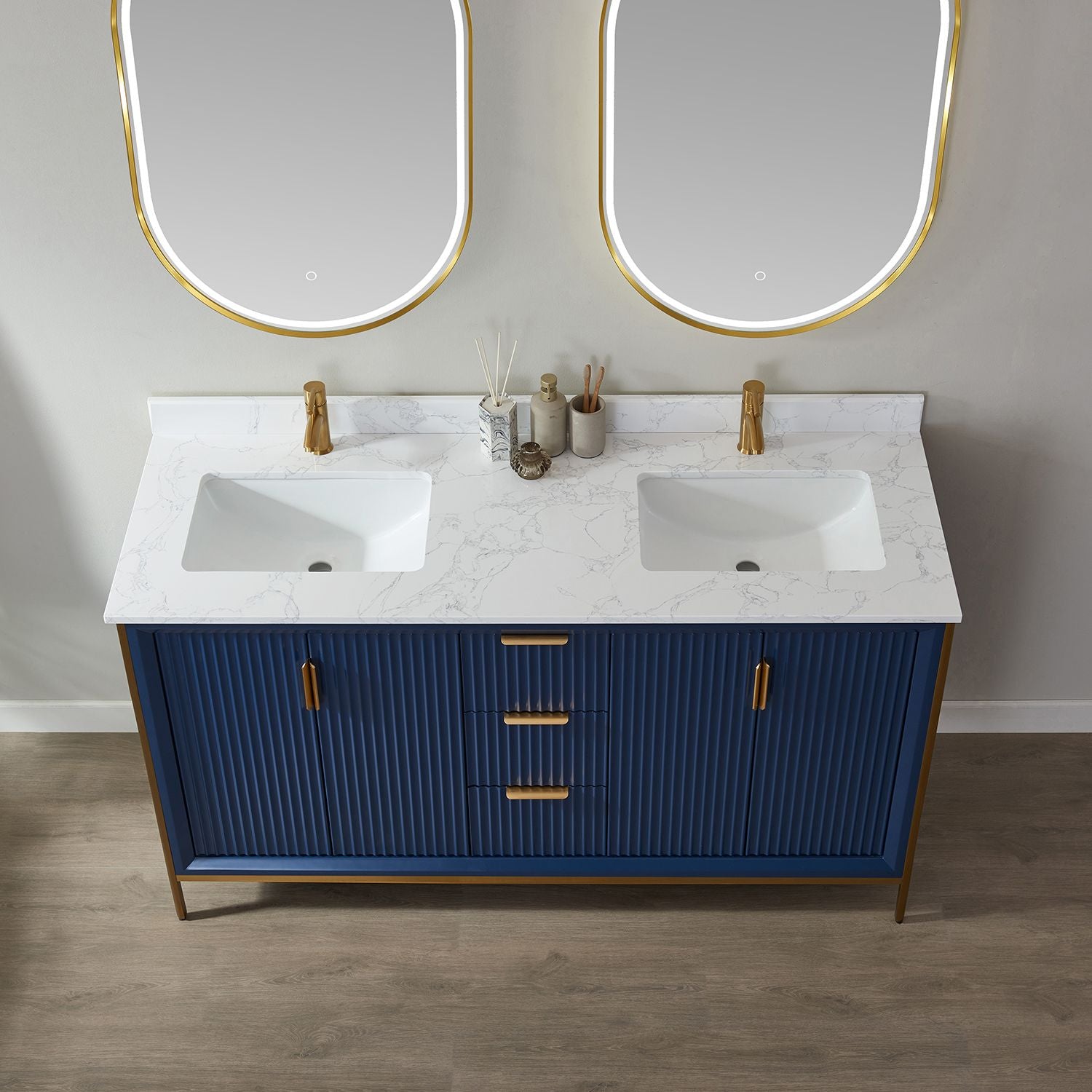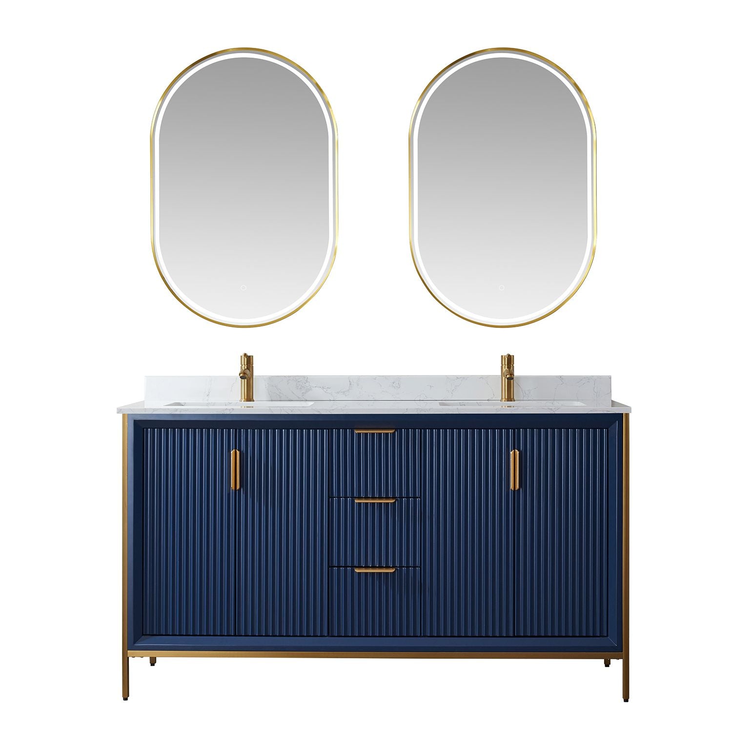 Granada 60" Vanity in Royal Blue with White Composite Grain Stone Countertop With Mirror