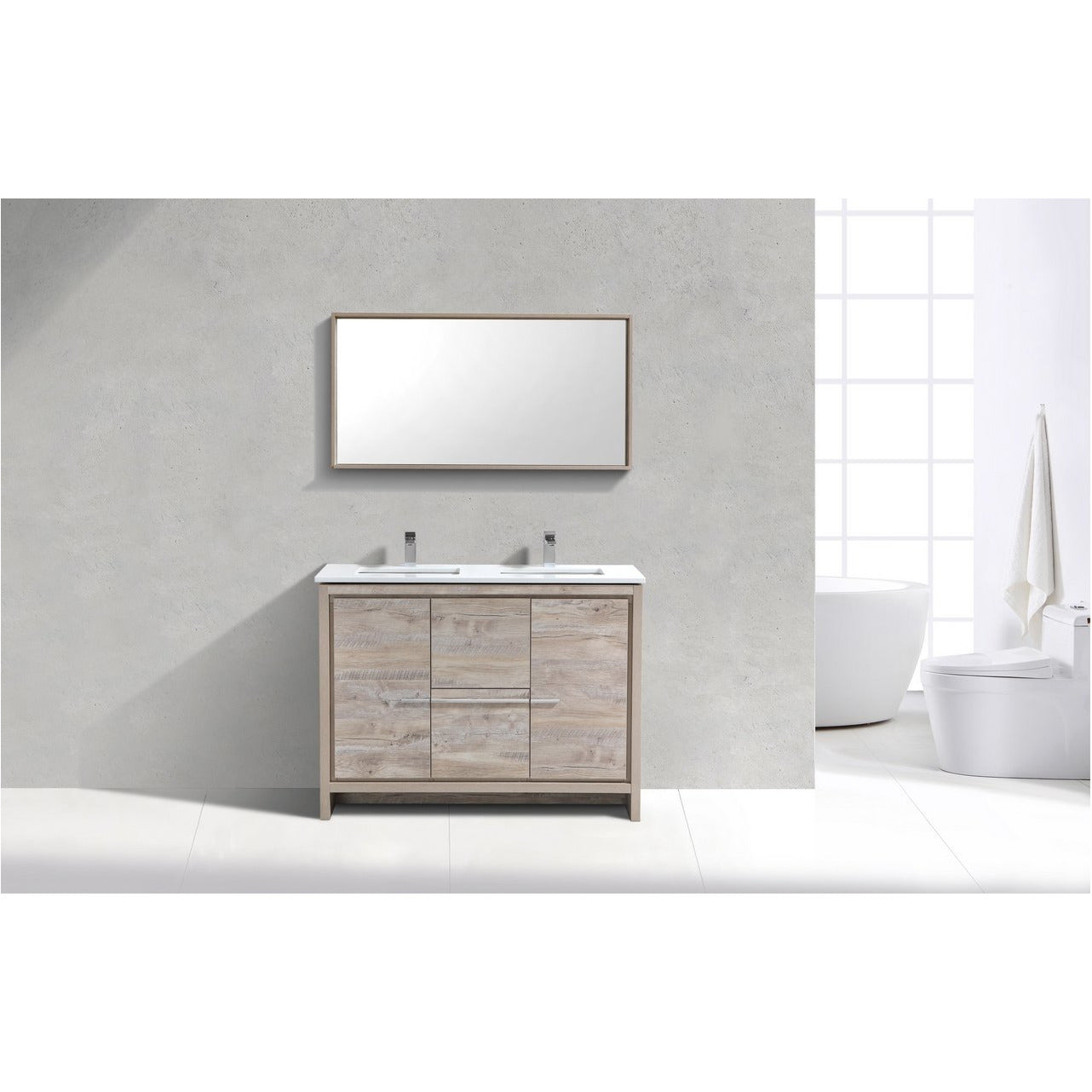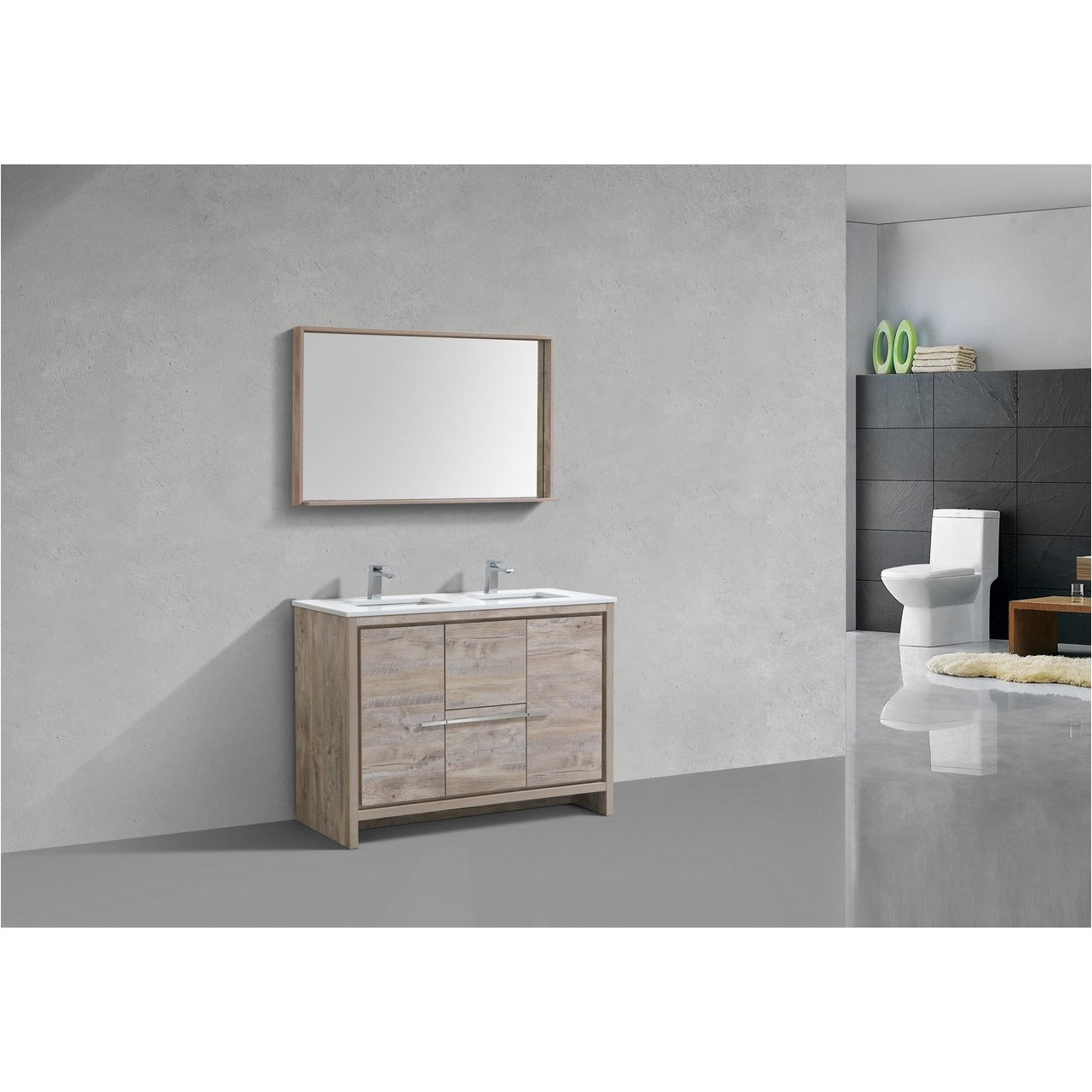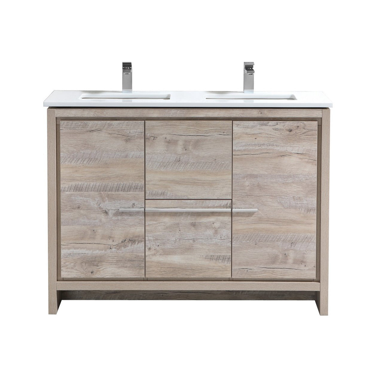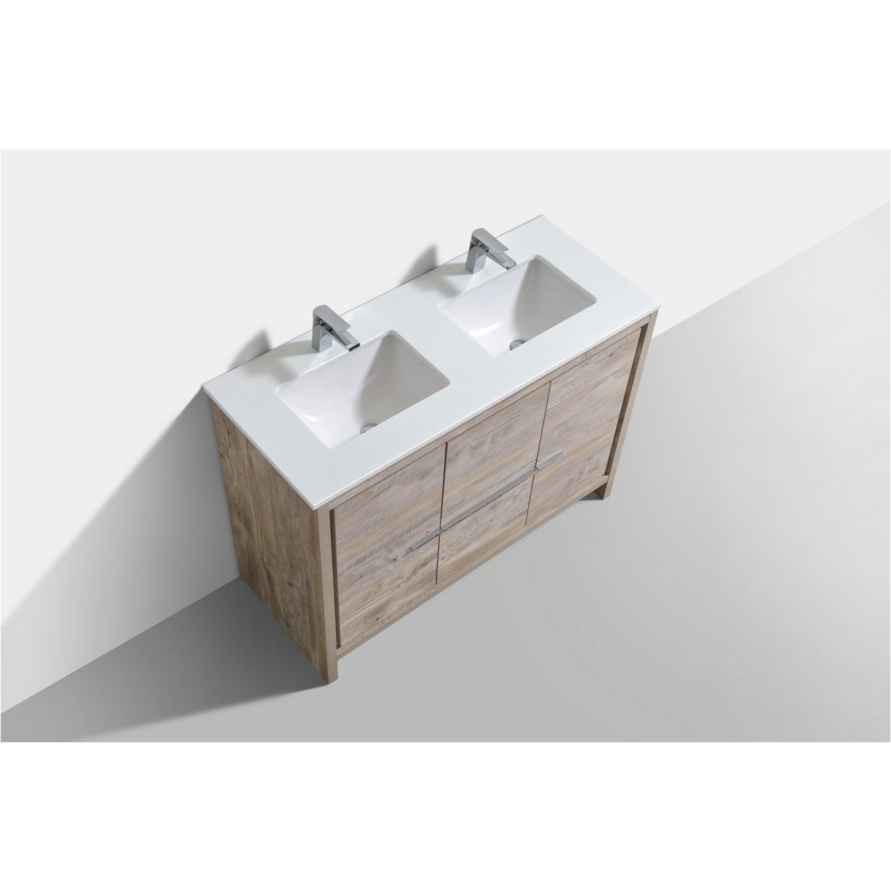 Kubebath Dolce 48″ Double Sink Nature Wood Modern Bathroom Vanity With Quartz Countertop