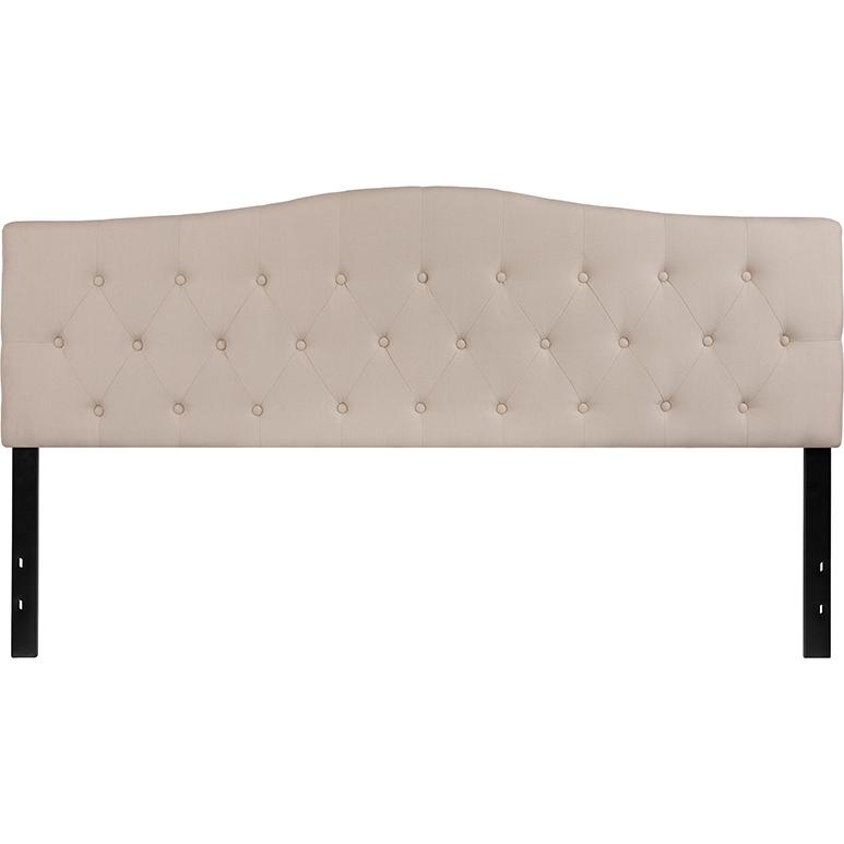 Cambridge Tufted Upholstered King Size Headboard in Beige Fabric