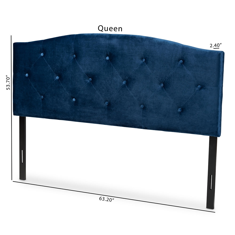 Leone Modern and Contemporary Navy Blue Velvet Fabric Upholstered Queen Size Headboard