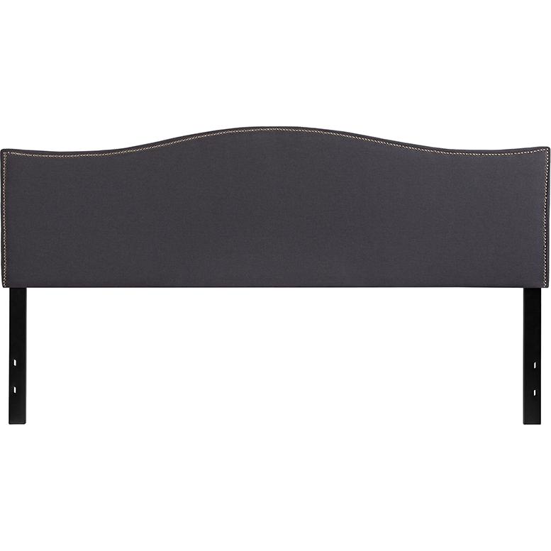 Lexington Upholstered King Size Headboard with Accent Nail Trim in Dark Gray Fabric