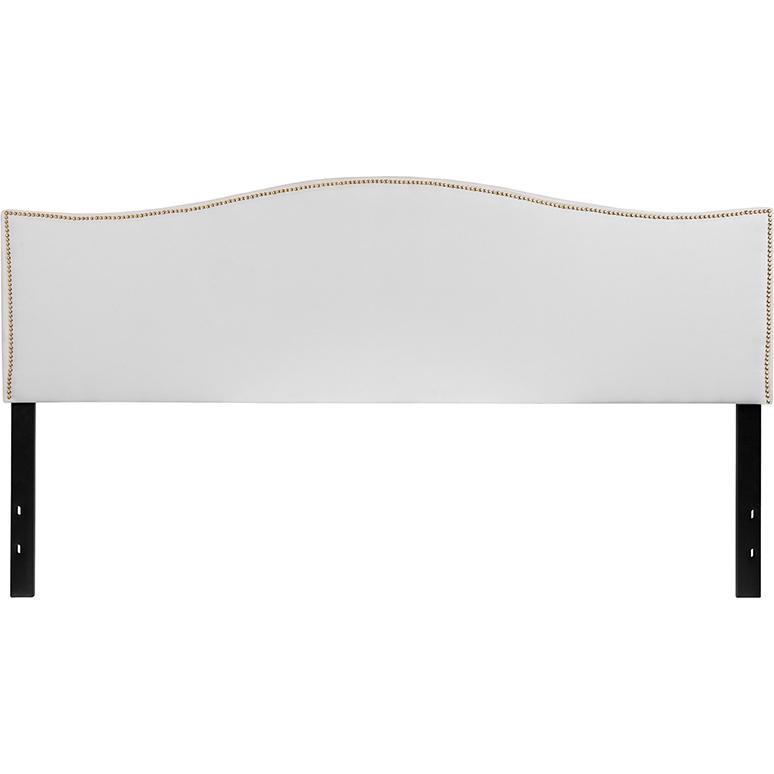 Lexington Upholstered King Size Headboard with Accent Nail Trim in White Fabric
