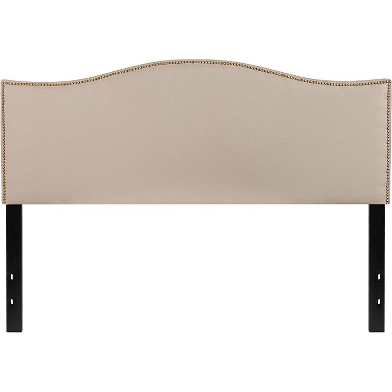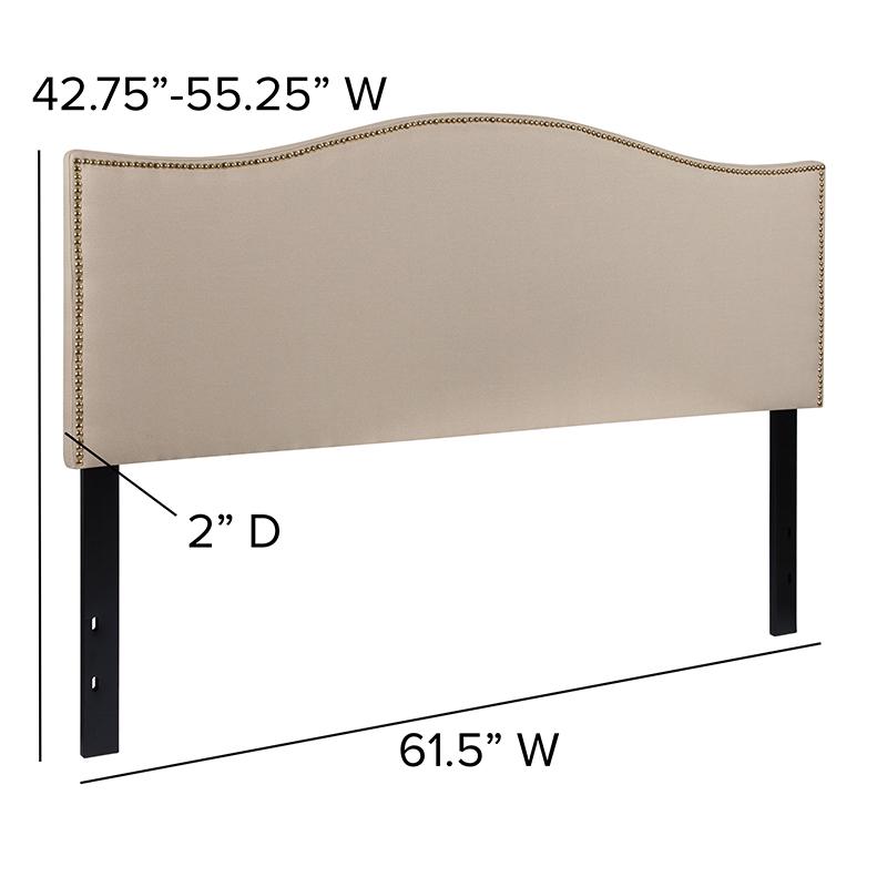 Lexington Upholstered Queen Size Headboard with Accent Nail Trim in Beige Fabric