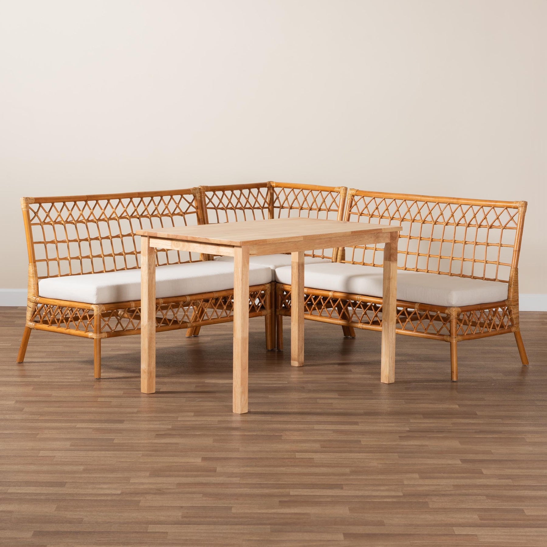 Aina Modern Bohemian Honey Rattan 4-piece Dining Nook Set