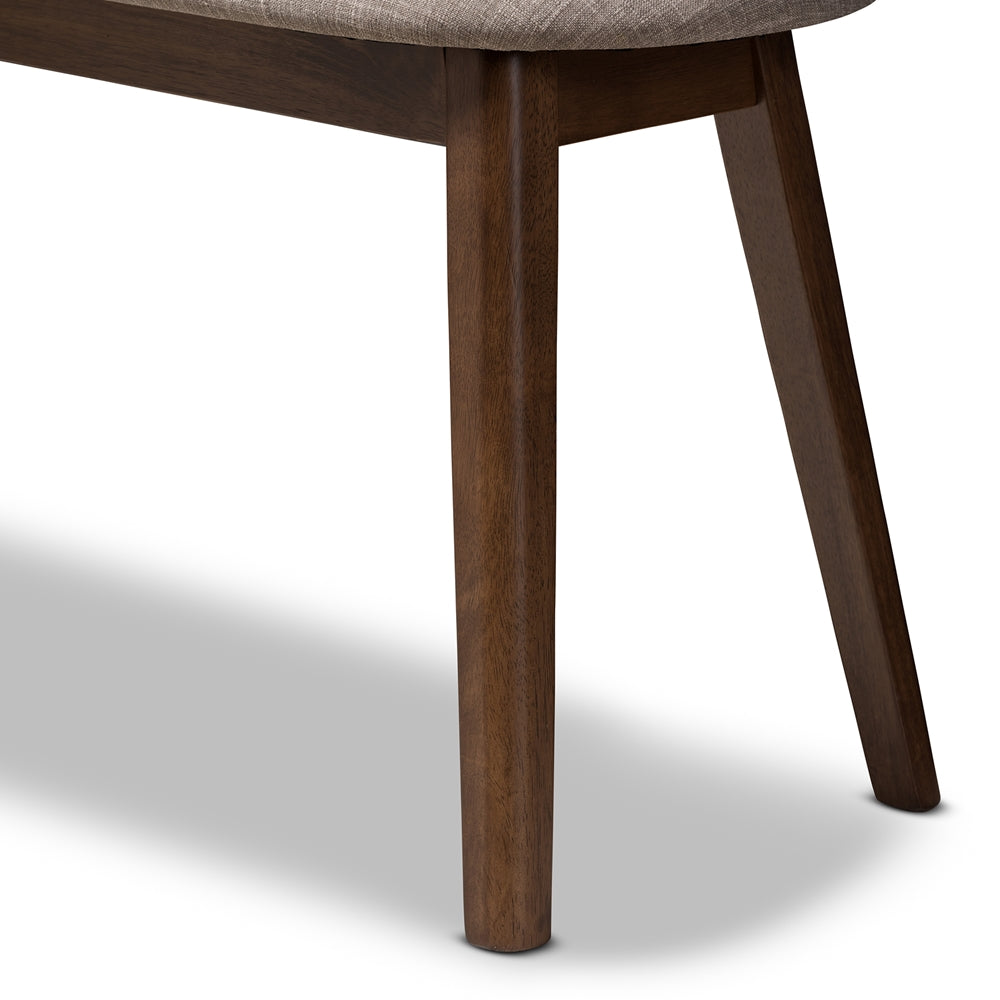 Easton Mid-Century Light Grey Fabric Upholstered Walnut Finished Wood Bench