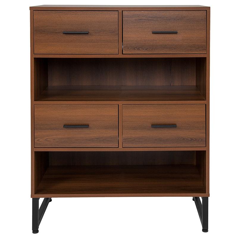 Lincoln Collection 2 Shelf 41.25"H Display Bookcase with Four Drawers in Rustic Wood Grain Finish
