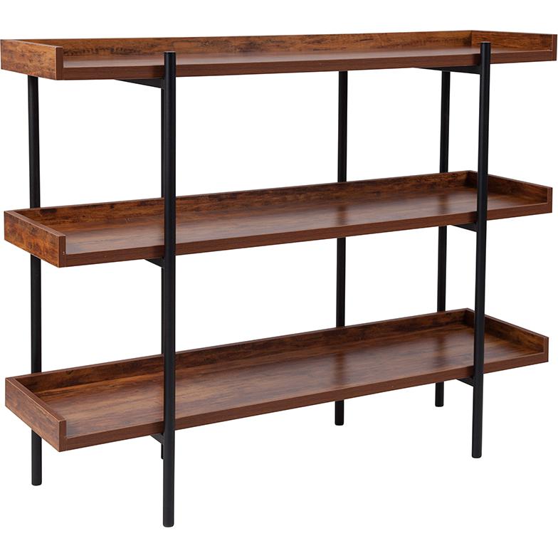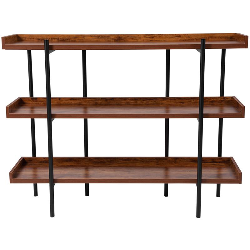 Mayfair 3 Shelf 35"H Storage Display Unit Bookcase with Black Metal Frame in Rustic Wood Grain Finish