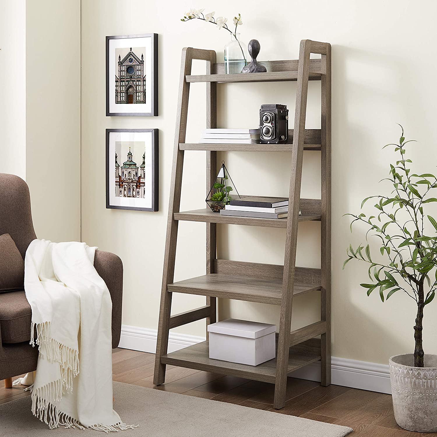 Keep your office stylish and organized with the Tracey Collection. Perfect for adding storage and display space to your area, the Tracey Ladder Bookcase is sturdy and durable. Five spacious shelves provide ample space for books, accent pieces and frames. The gray finish and transitional design makes it an easy addition to your home's existing decor.