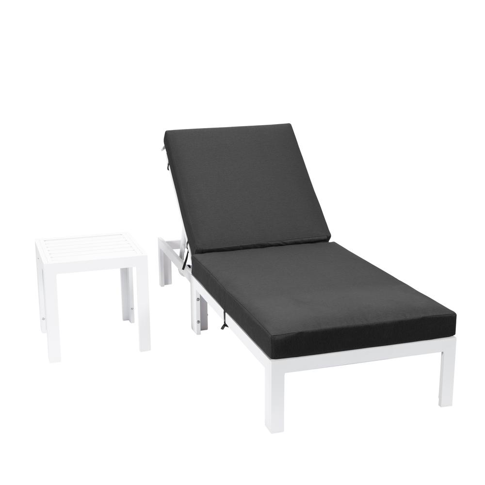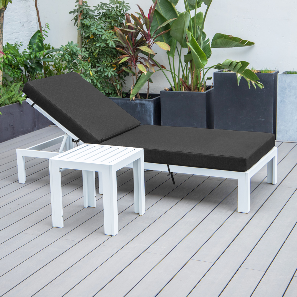 Chelsea Modern Outdoor White Chaise Lounge Chair With Side Table Cushions