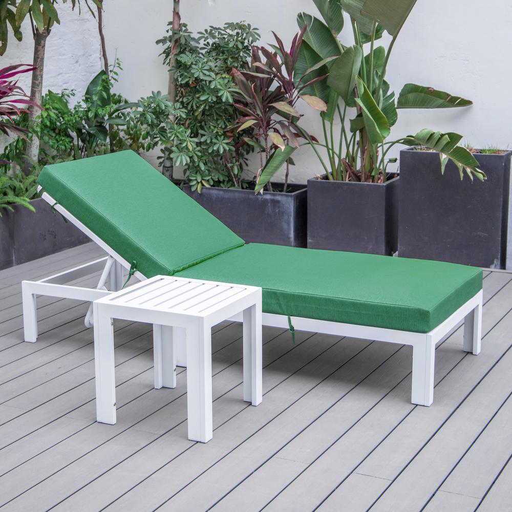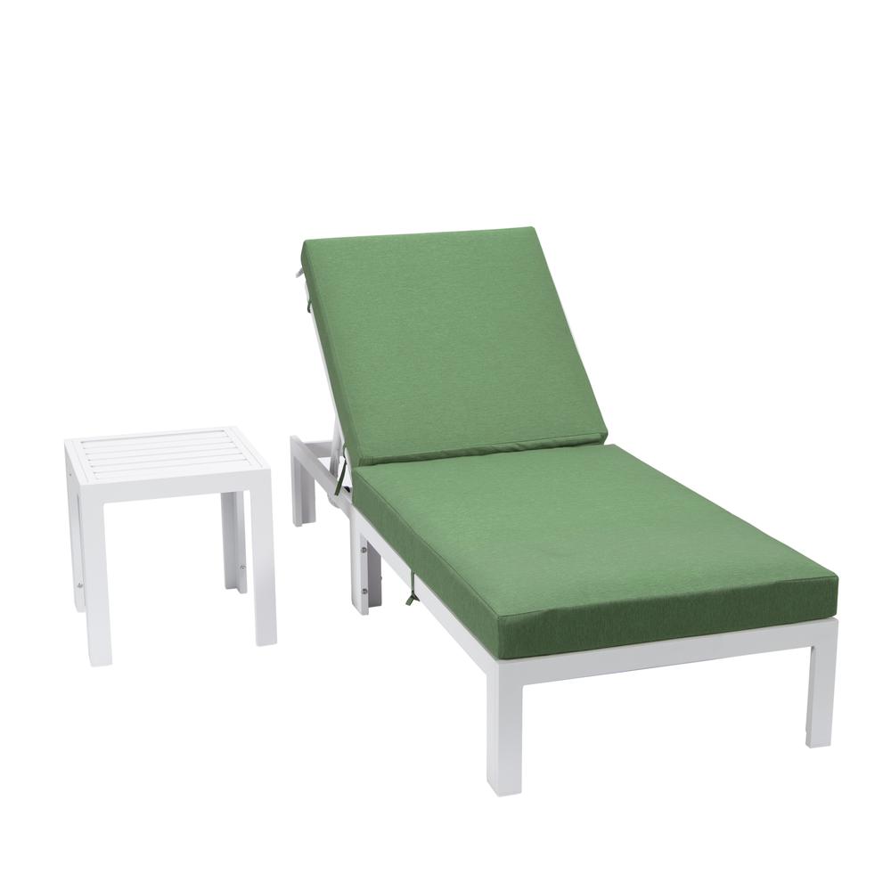Chelsea Modern Outdoor White Chaise Lounge Chair With Side Table Cushions