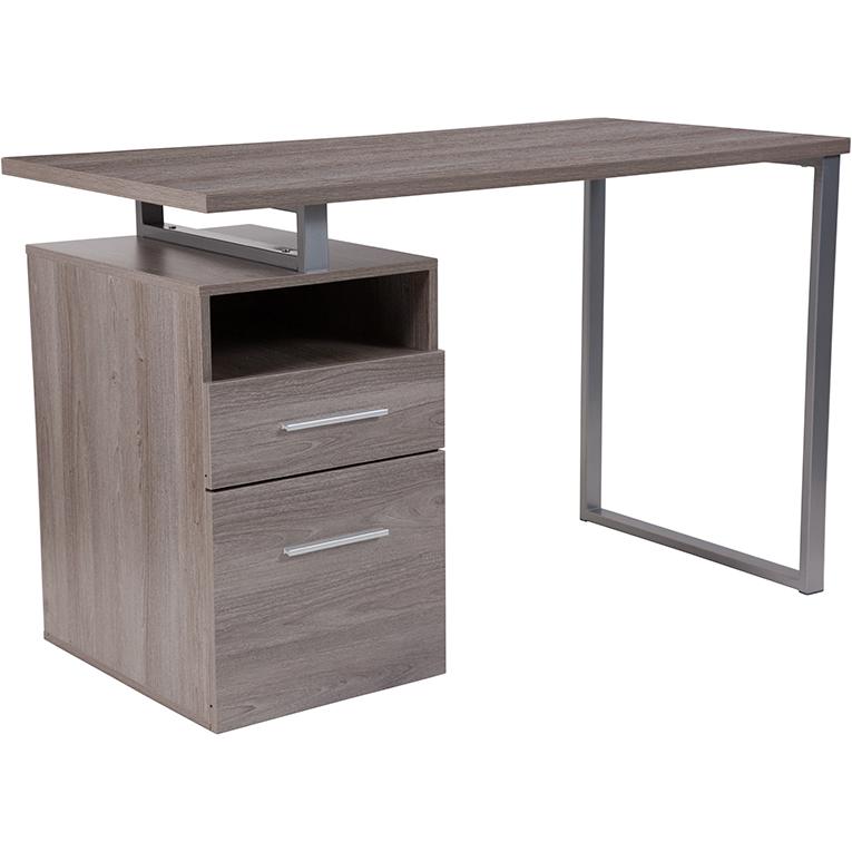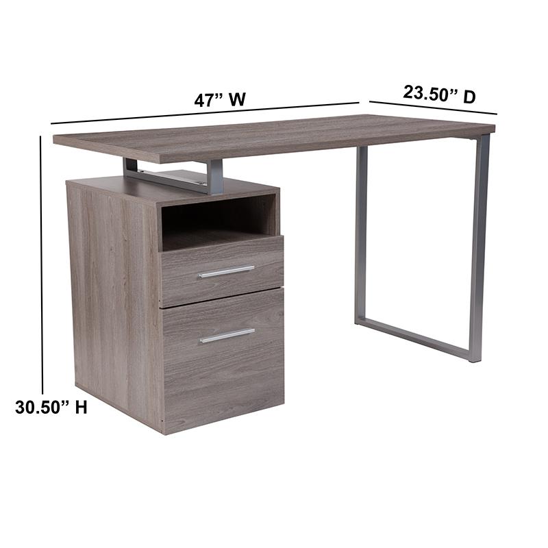 Harwood Light Ash Wood Grain Finish Computer Desk with Two Drawers and Silver Metal Frame