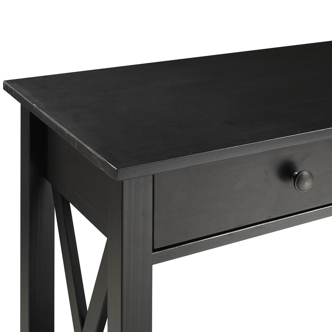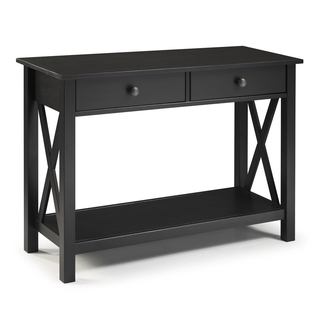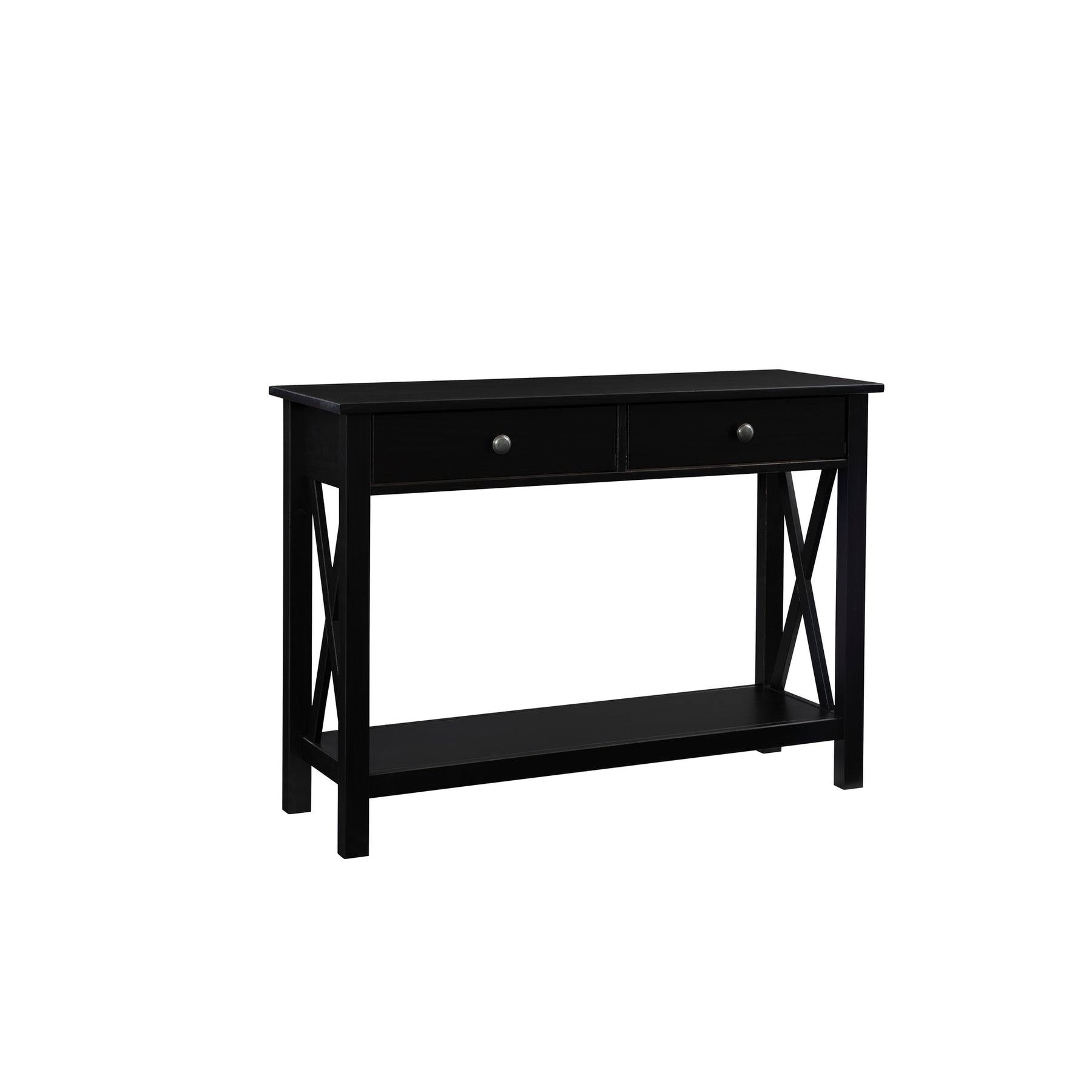 The Davis Collection has a simple yet eye-catching design that is matched with incredible durability. The versatile console table features a classic shape that makes it perfect for any space. A spacious tabletop and a large bottom shelf provide ample storage and display space. A neutral, black finish allows this piece to easily complement your homes decor. Perfect for use in an entry way, under a wall mounted TV or behind a sofa.