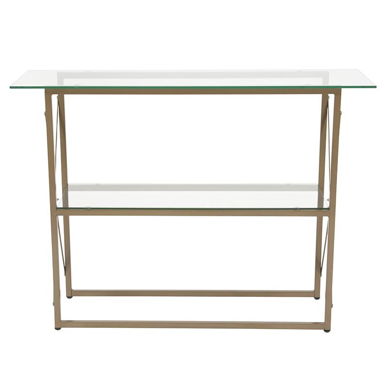 Mar Vista Collection Glass Console Table with Matte Gold Frame