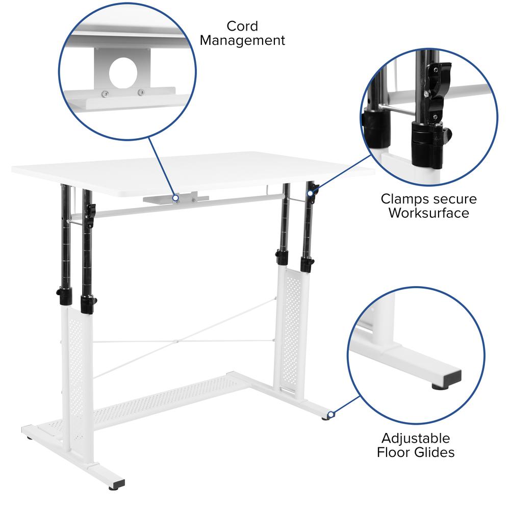 Height Adjustable (27.25-35.75"H) Sit to Stand Home Office Desk - White